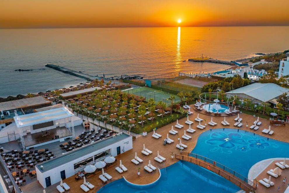 Хотелът е построен прз 2022 г. на площ от 25 000 кв.м на брега на морето. Има собстве плаж, дълъг 100 м и платформа, открти и закрит басейни, басейн за деца, отличен детски кът и специални предложения за семейства с бебета. Стаите са просторни и светли, разполагат в балкон/тераса. Има СПА център и много възможности за активен отдих.