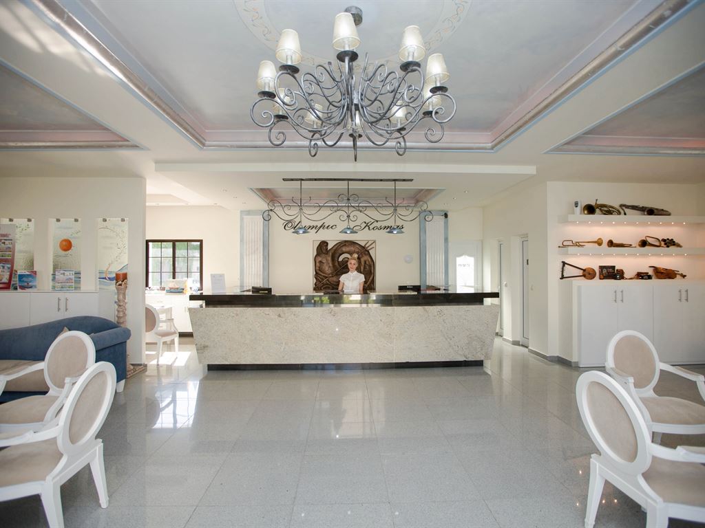 Описание Местоположение Bomo Club Olympic Kosma се намира на 90 км от летище "Македония", на 500 м от центъра на курортното селище Ханиоти, на ръкава Касандра в Халкидики, на 5 минути пеша от брега на от морето. Настаняване Bomo Club Olympic Kosma разполага общо със 140 стаи за гости, оборудвани с индивидуален климатик, сателитна телевизия, мини хладилник, баня с душ, сешоар, балкон/тераса. При настаняване на допълнителното легло - разтегателно кресло. Стаите се почистват всеки ден, спалното бельо се сменя три пъти седмично. Храна и напитки Bomo Club Olympic Kosma разполага с един основен ресторант, снек бар, бар при басейна. Bomo Club Olympic Kosma работи на BB, HB и All Inclusive. Концепцията All Inclusive – закуска, късна закуска, обяд, вечеря, сладолед по време на вечеря. Напитки: чай, френско кафе, сокове, вино, пиво, узо - концепцията действа от 10:00 до 22:00 часа. Нов главен готвач, богата шведска маса Удобства, спорт и забавления Bomo Club Olympic Kosma предлага възможност за отдих и забавления на 1 открит басейн за възрастни с детска секция. Wi-Fi интернет е наличен в публичните зони на хотела без допълнително заплащане. Сейф на рецепция срещу заплащане. Има автобусна спирка на 200 м от хотела. В близост до хотела е достъпен безплатен обществен паркинг. Плаж Bomo Club Olympic Kosma се намира на 5 минути пеша от обществен пясъчен плаж. Предлага удобството на открит басейн. Чадъри и шезлонги край басейна - безплатно, на плажа - срещу допълнително заплащане.