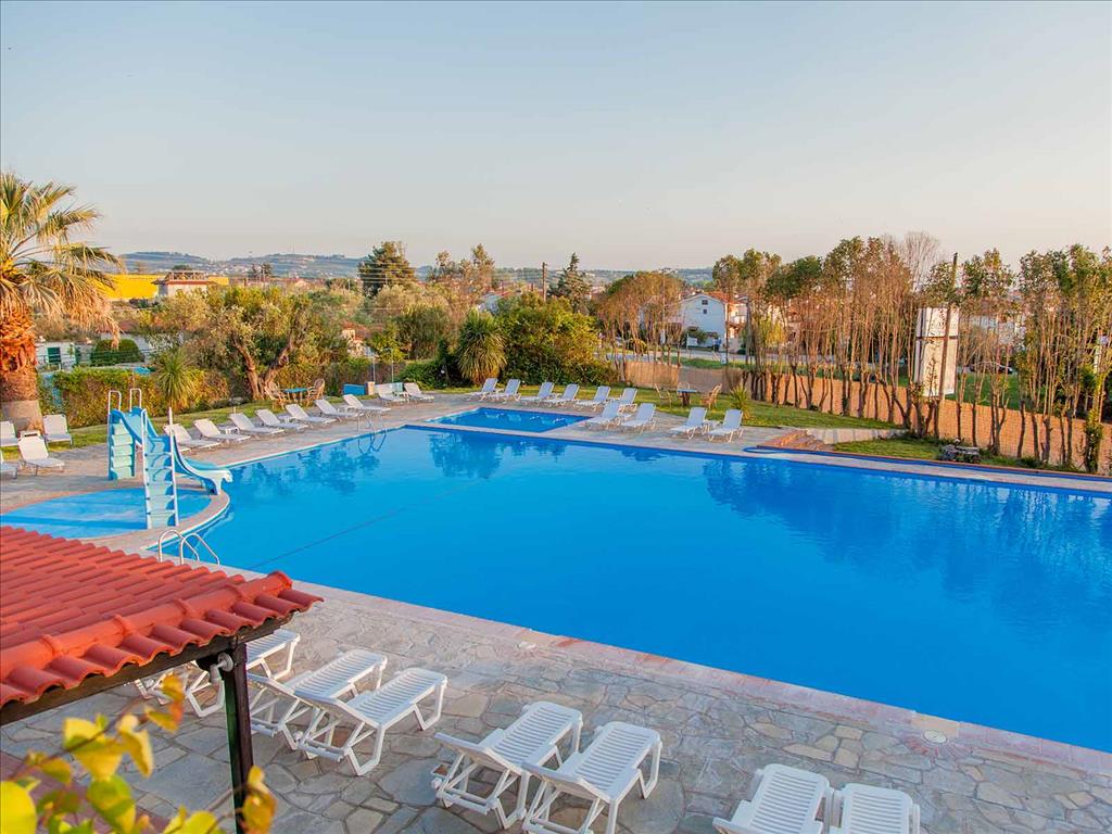 Описание Местоположение Хотелът се намира на 90 км от Солун, на около 600 м от селището Скала Фурка, където можете да откриете изобилие от таверни, рибни ресторанти, дискотеки и водни спортове. Точно пред хотела спират автобусите, отиващи до Солун, отдалечен на 90 километра. Настаняване Всички стаи са напълно оборудвани с баня, телефон, радио, хладилник, климатик, телевизор и частни, просторни тераси, предлагащи великолепна гледка към морето и зеленината на гората. Интернет Line WiFi Храна и напитки Бар, бюфет ресторант, кафене. Удобства, спорт и забавления 24 часа рецепция, детски забавления, валутна обмяна, игрална зала, пинг-понг, воден бар, сейф, външен басейн с обособена част за деца. Съоръжения за тенис, колоездене (извън мястото за настаняване), пешеходен туризъм, велосипед под наем (допълнително заплащане), детска площадка, тенис корт. Безплатен обществен паркинг е достъпен на място (резервация не е необходима). Плаж Около 300 метра е плажа на Фурка, където има много морски спортове и много красиво море. Хотелът предлага удобството на открит плувен басейн. Тераса за слънчеви бани