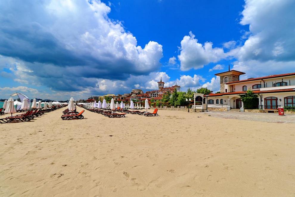 Плажът е на 20 метра от хотела. За удобството на своите гости хотелът предлага и отопляем със слънчеви панели открит басейн, както и тераса за слънчеви бани.
