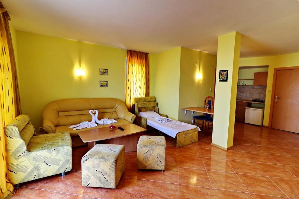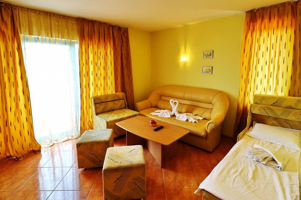 Базата на хотела се състои от 31 двойни стаи с по едно разтегателно фотьойлче (2+1), 6 двойни стаи с по 2 фотьойла (2+2), 2 студиа с 2+2 легла, както и 2 апартамента с 2+2 легла. Стаите и баните са комфортни и удобни, оборудвани с климатик(охлаждане/отопление), кабелна телевизия, хладилник, телефон, сешоар. Морска гледка има от всяка стая, като от повечето стаи тя е пълна, а само от някои морето може да се съзерцава само от терасата. Някои от стаите имат добре оборудван кухненски бокс.