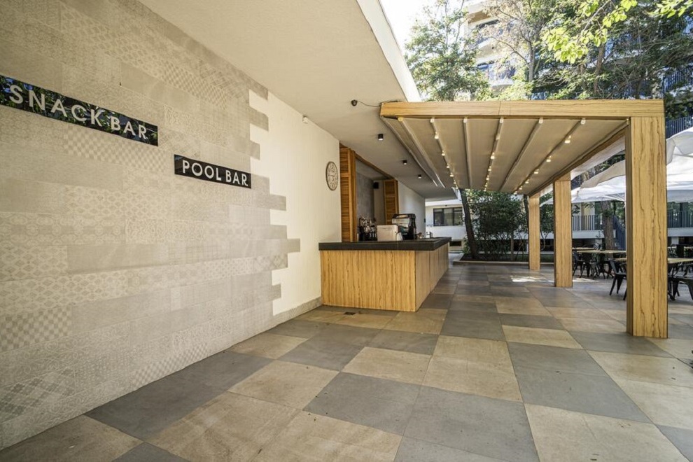 Хотелът е само на 150 метра от плажа и предлага удобството на външен басейн и тераса за слънчеви бани. .