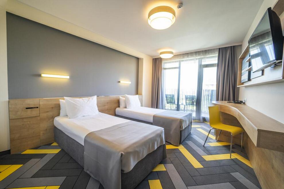 Хотелът e напълно реновиран през 2015 година и разполага с 229 стаи, от които 10 апартамента. Всяка двойна стая разполага с две редовни легла, допълнително легло, климатик, кабелна TV, телефон, минибар (безплатно ежедневно зареждане с вода, безалкохолни напитки и бира), сешоар, сейф (срещу заплащане), баня с душ и балкон със столове и маса. Двойните стаи са подходящи за настаняване на 2 възрастни и 1 дете или 3 възрастни. Фамилната стая представлява две двойни стаи със свързваща врата. На разположения са четири редовни легла и две допълнителни легла, климатик, кабелна TV, телефон, мини бар (безплатно ежедневно зареждане с вода, безалкохолни напитки и бира), сешоар, сейф (срещу заплащане), две бани и 2 балкона със столове и маса. Минимално настаняване 2 възрастни и 2 деца или 3 възрастни и 1 дете. Максимално настаняване 4 възрастни и 2 деца. Хотелът разполага с 10 апартамента. Те съчетават 1 или 2 спални помещения и голяма всекидневна с възможност за допълнително настаняване. Обзавеждането в апартамента се състои от – кабелна телевизия, мини бар (безплатно ежедневно зареждане с вода, безалкохолни напитки и бира), телефон, климатик, сейф (срещу заплащане),сешоар, баня с душ, балкон със столове и маса. Мека мебел в дневната.