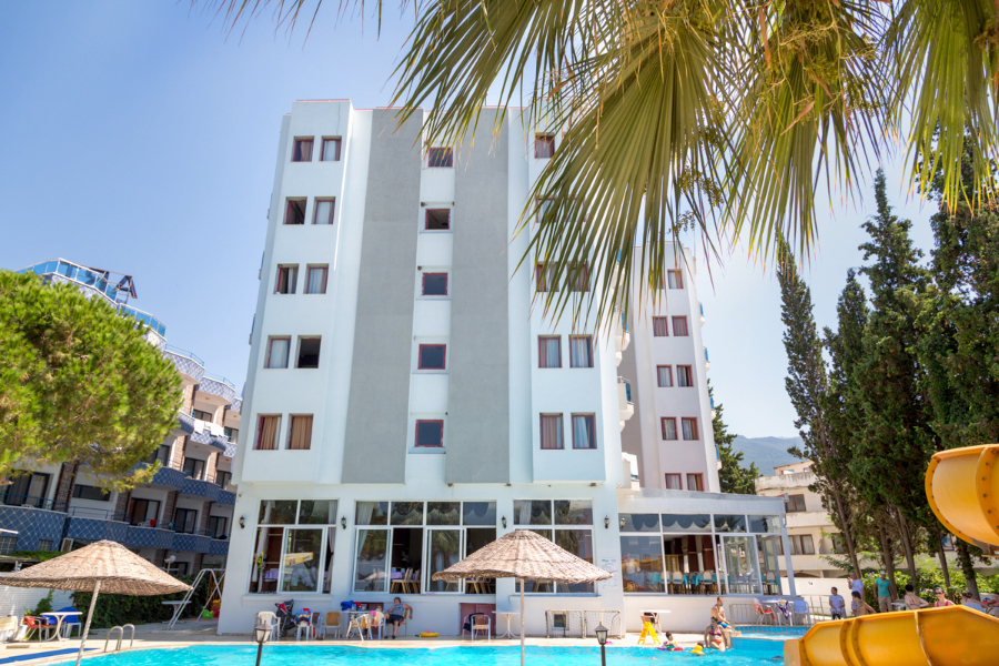 Описание Разположение: Хотелът е разположен на 22 км от центъра на гр. Кушадасъ, на брега на морето. Хотелът е реновиран 2013г. В стаите: Климатик, телевизор, телефон, баня с душ и сешоар, балкон. На територията на хотела: Хотелът разполага с основен ресторант, лоби бар, открит басейн, басейн за деца с водна пързалка, анимация, тенис на маса, фитнес, сауна, турск баня, интернет, паркинг. Услуги предлагани в хотела срещу заплащане: пералня, сейф, билярд, джакузи и масажи, детегледачка, пералня, магазин, лекар. Плаж: Собствен – пясъчен. Чадъри и шезлонги на плажа и басейна – безплатно. Хранене: All inclusive – закуска, обяд, вечеря, местни алкохолни и безалкохолни напитки.