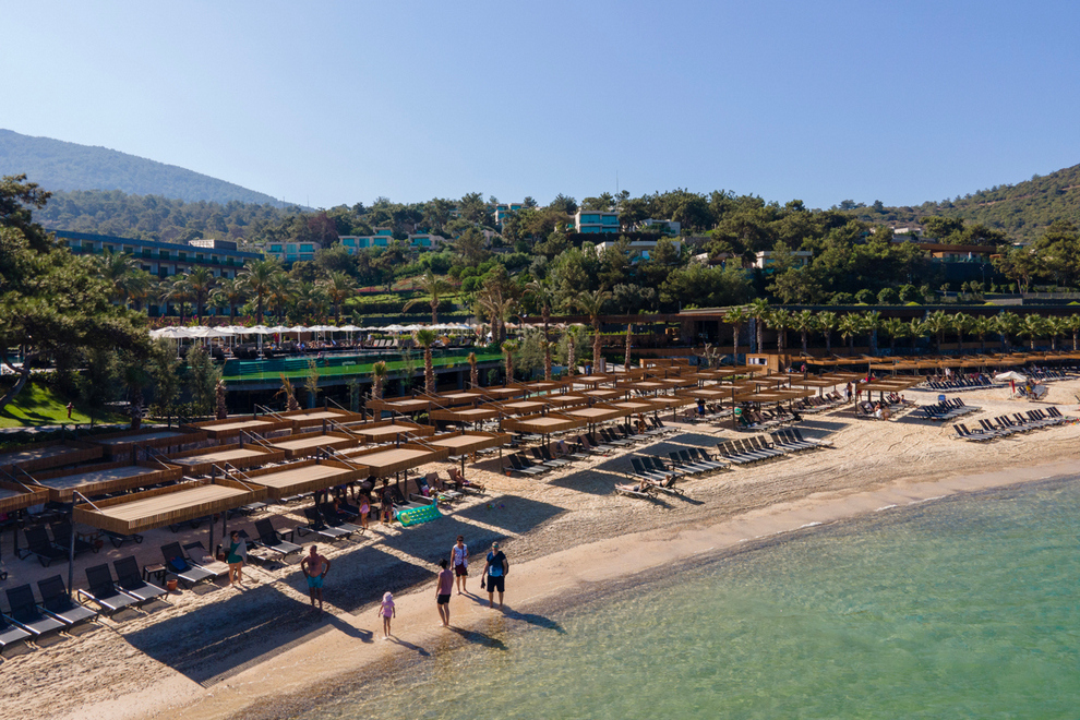 Този красив хотел е разположен на обширна територия, на брега на Егейско море. Предлага луксозен интериор и модерен комфорт. Идеален избор за почивка сред зашеметяващата природа на Егейското крайбрежие на Турция. Хотелът се намира на 27 км от летище Милас, на 6 км от центъра на Бодрум, в района на Торба.