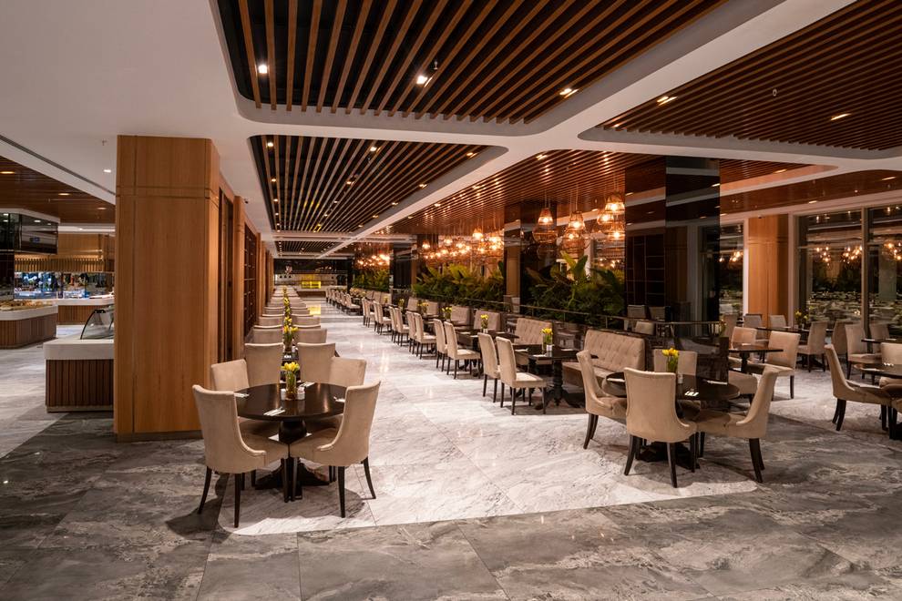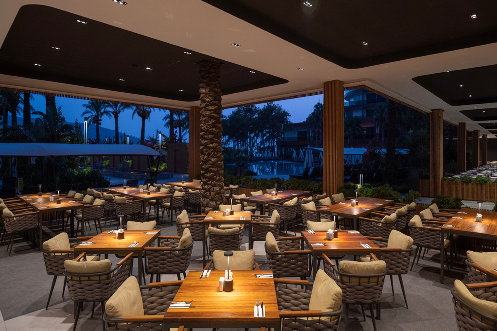 На разположение на гостите са основен ресторант Veranda с диетично меню и детски бюфет (дрескод за вечеря), Villa ресторант (за гостите на частните вили, без доплащане, дрескод за вечеря), 6 а`ла карт ресторанта: италиански, азиатски, турски, рибен (един път безплатно за минимум 7 нощувки), DUMAN ET (платен, с предварителна резервация, изисква се елегантен дрес код за вечеря. Освежаващи напитки и закуски се поднасят в 10 бара: 24-часов лоби бар, бар при басейна, бар на плажа, витамин бар, ВИП ексклузив бар, а`ла карт бар, кафе бар, нощен клуб "Кабаре", снек бар в Candyland (безплатно), сладкарница, Candytown ресторант (работи за обяд, безплатно).