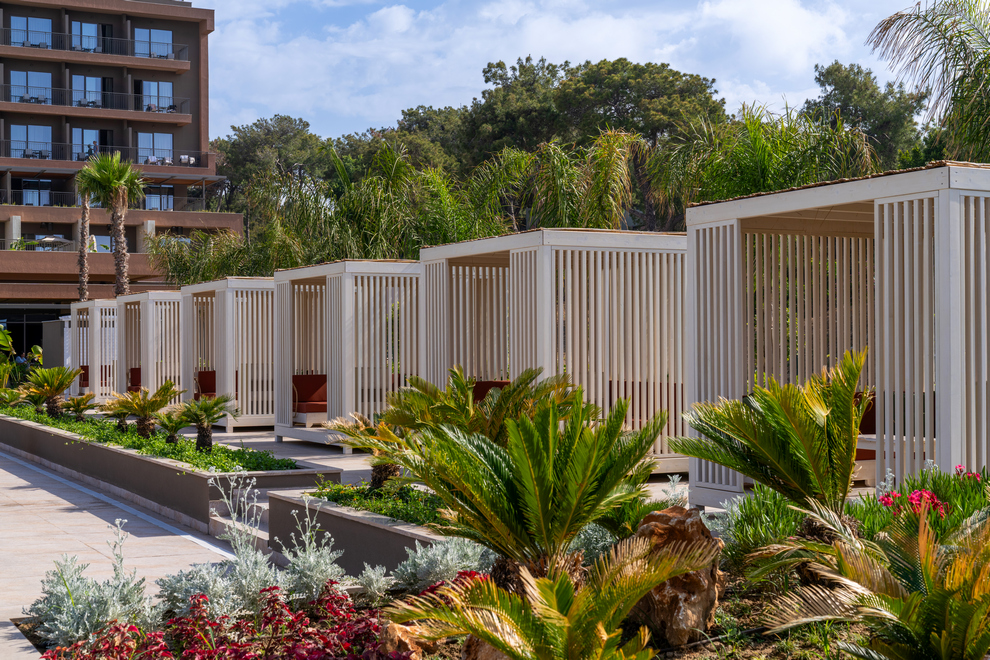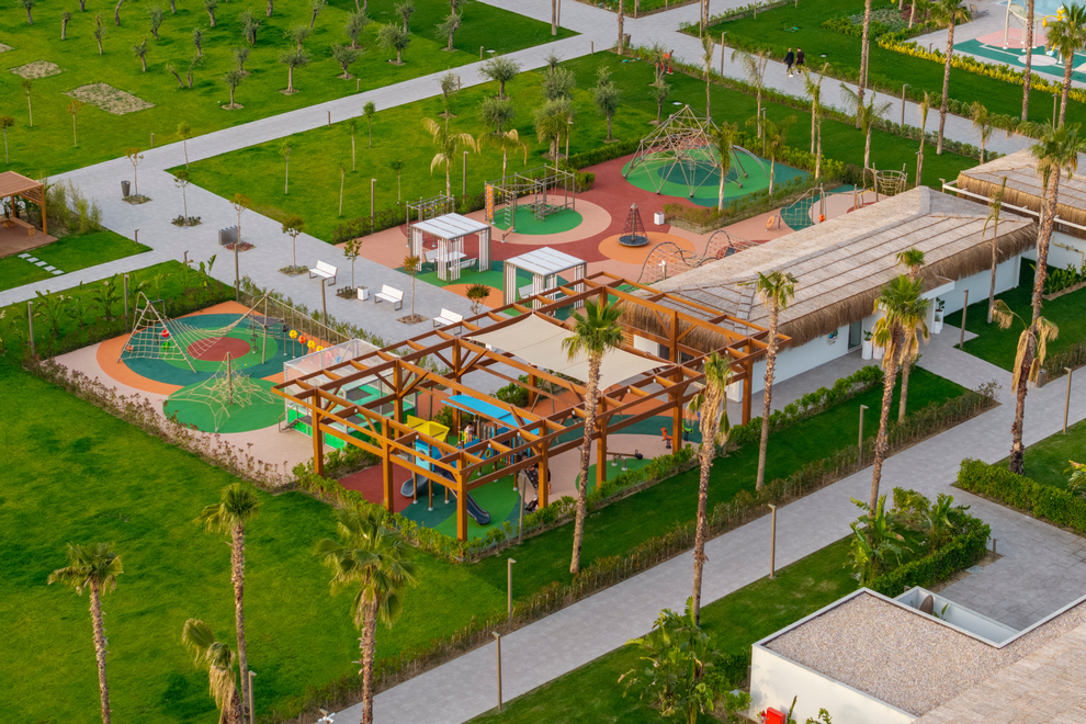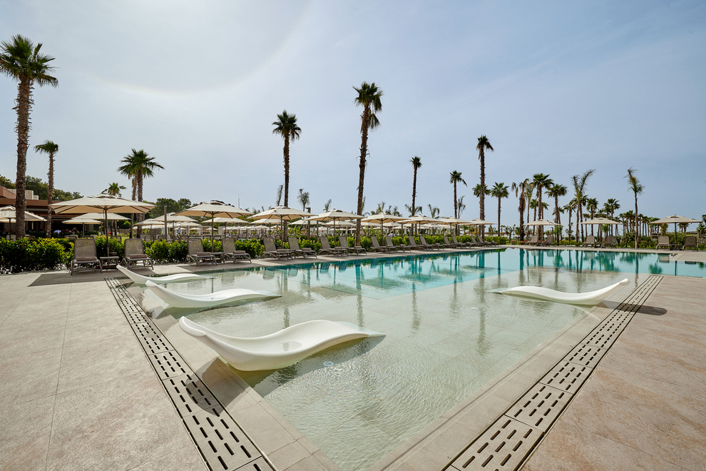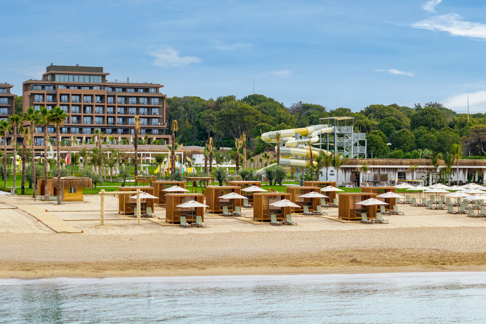Собствен, пясъчно-чакълест плаж. На разположение на гостите са 11 открити и 1 закрит басейн (отопляем в периодите 21.03-30.04 и 01.10-31.10), аквапарк с 5 водни пързалки за възрастни и 3 за деца. Чадъри, шезлонги и плажни кърпи на плажа и при басейна се ползват безплатно.