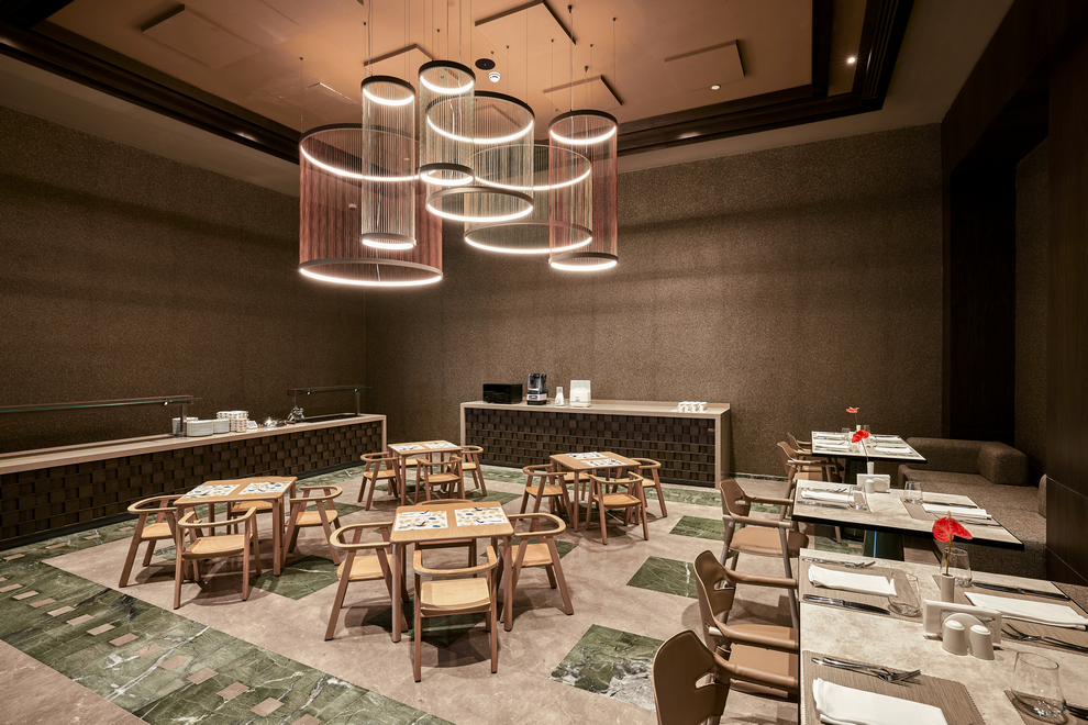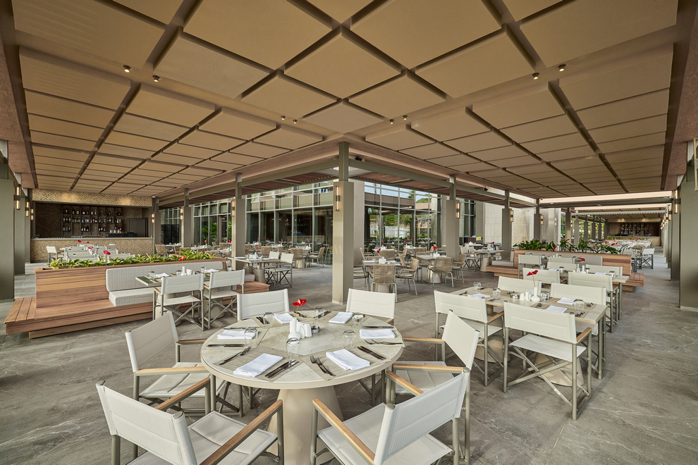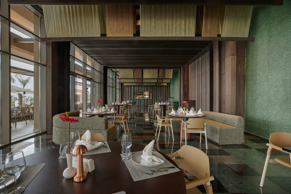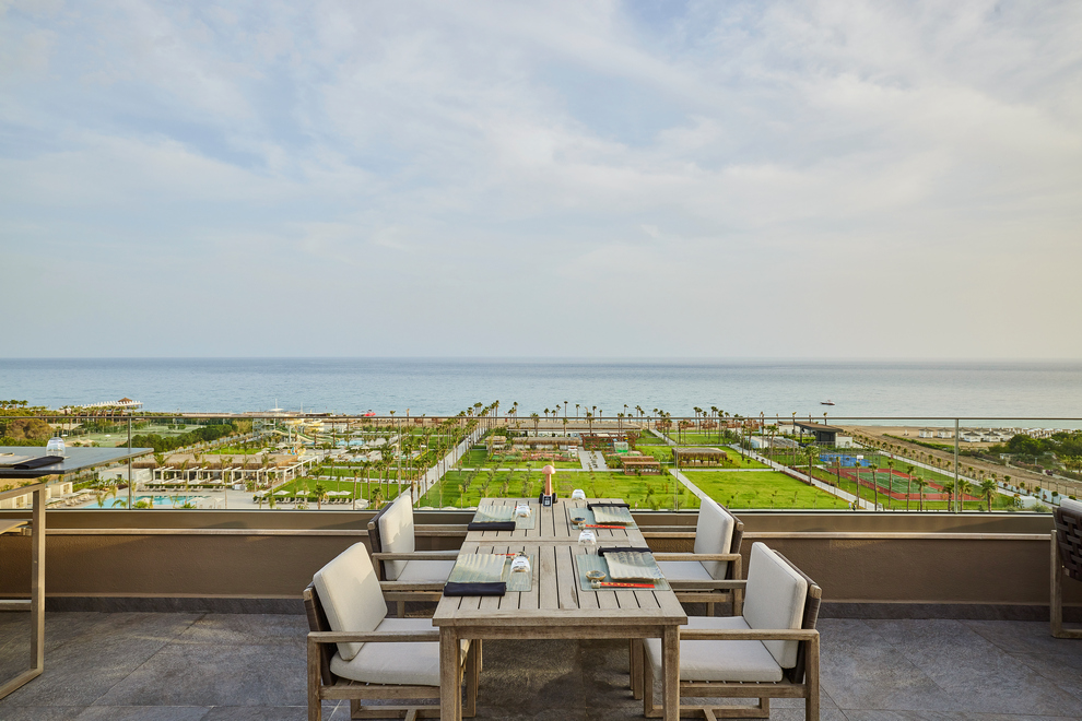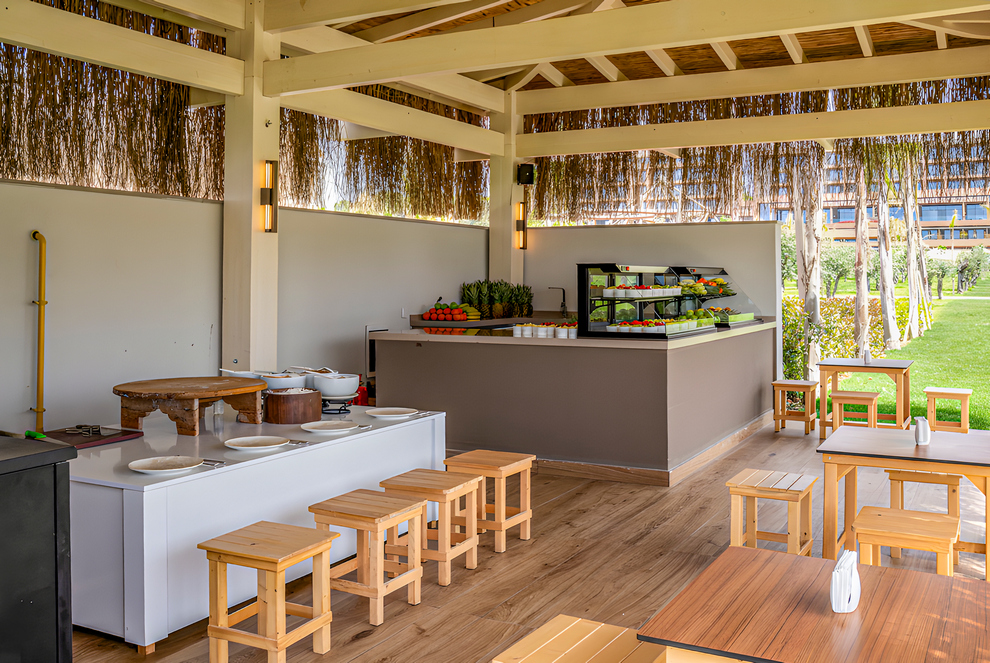 На разположение на гостите са основен ресторант (тематични вечери 7 дни в седмицата, диетичен и веган бюфет), 5 а`ла карт ресторанта: италианска купня, егейска кухня, турска кухня (1 безплатно посещение на 1 от ресторантите при минимум 7 нощувки, с предварителна резервация); интернационална кухня, далекоизточна кухня (срещу заплащане, с предварителна резервация), 1 снек ресторант, бистро 24/7, сладкарница, кафене. Освежаващи напитки и закуски се поднасят в 11 бара (един от които 24/7).
