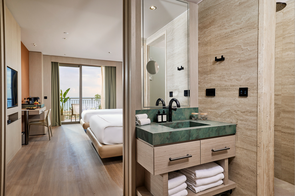 Superior Family Suite с гледка природа/море, 2 стаи (1 двойно легло и диван) със свързваща врата, 2 бани с душ/тоалетна, общ балкон, площ 66 кв.м, максимален капацитет 4+1 дете.