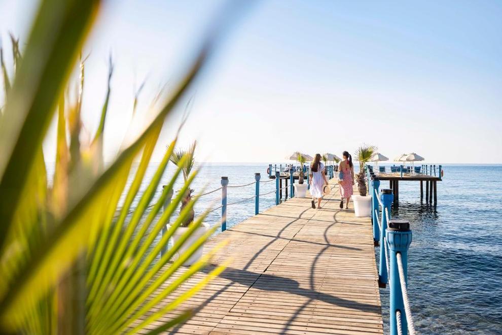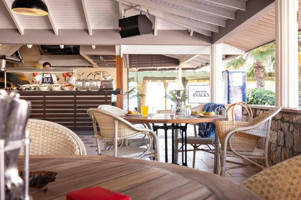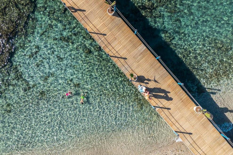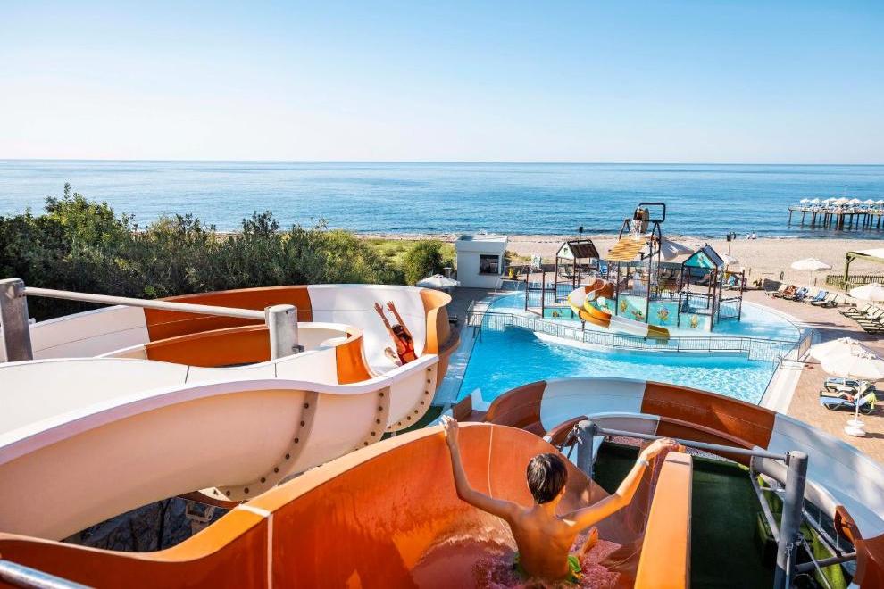Собствен, пясъчно-чакълест плаж, удостоен със сертификат "Син флаг". Има открит басейн и мини аквапарк.
