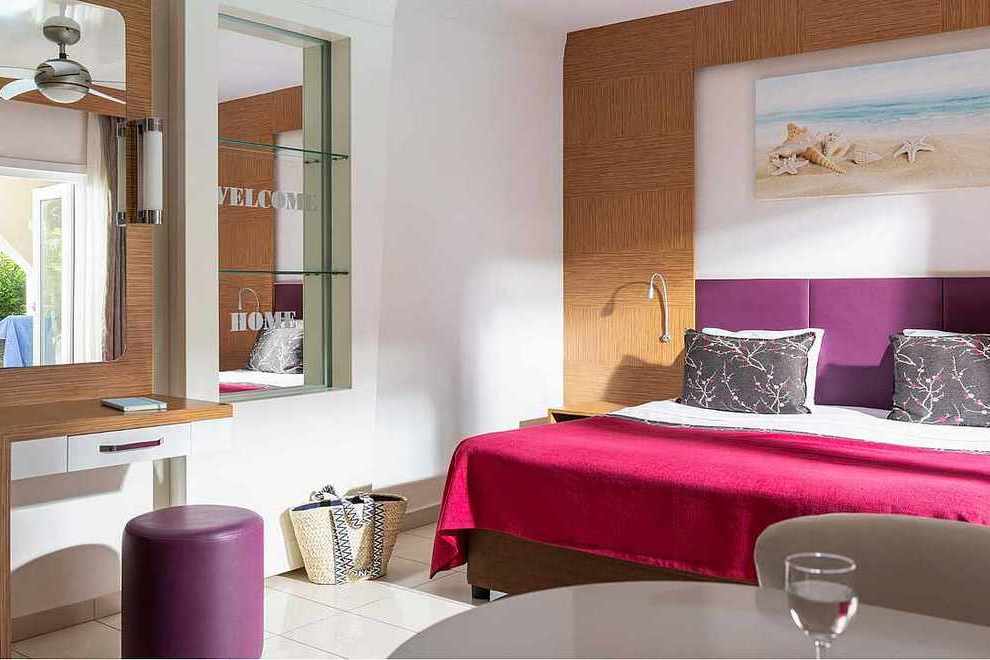 Хотелът посреща гостите си в 306 климатизирани стаи, от които: Standard Room (29 кв.м) и Family Room (40 кв.м). Те са оборудвани с телевизор, телефон, минибар (зареждане с вода всеки ден), сет за приготвяне на чай/кафе, сейф, баня с душ, сешоар, балкон.