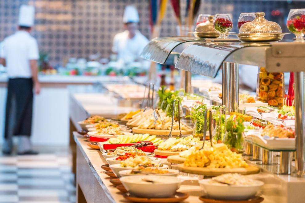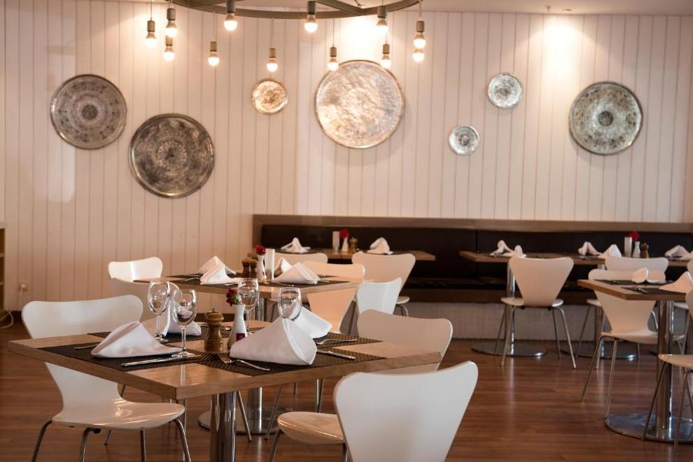 Хотелът разполага с основен ресторант, тераса-грил ресторант и ресторант на плажа. В 2-та бара се предлагат освежаващи напитки. All Inclusive – закуска, обяд и вечеря на блок маса, междинни хранения, местни алкохолни и безалкохолни напитки – без лимит.