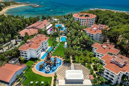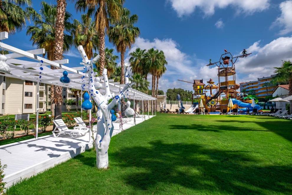 Собствен пясъчен плаж, който има и обособена и тревна площ. 11 открити басейна и един закрит басейн, 7 детски басейна, аквапарк с 5 водни пързалки. Чадъри, шезлонги и матраци на плажа и при басейна се ползват безплатно.
