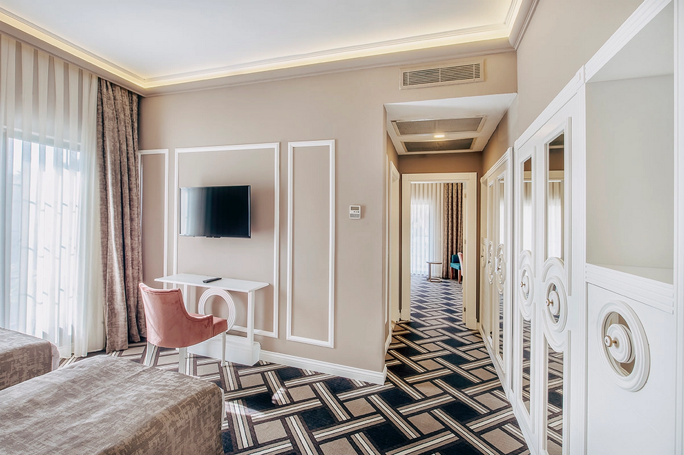 Хотелът посреща гостите си в 368 климатизирани стаи. Те са оборудвани с LCD телевизори във всички стаи, сет за чай и кафе, телефон, сейф, баня с душ, сешоар, Wi-Fi (безплатно на всякъде, освен в стаите). Всички стаи са с гледка към градина. Ежедневно почистване на стаите.