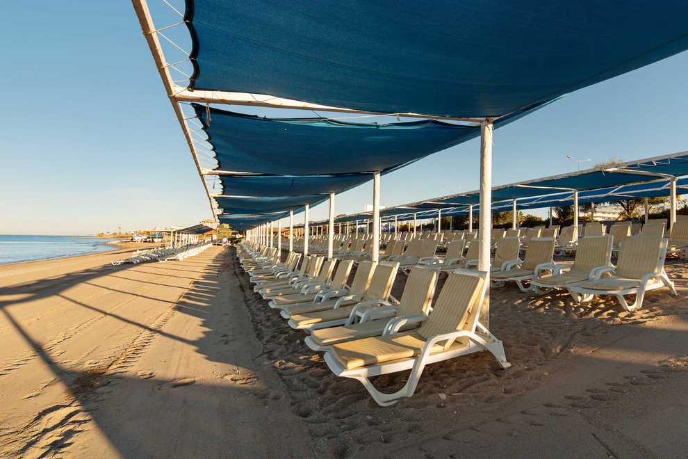 Комплексът разполага със собствен пясъчно-каменист плаж, на 50 м. от хотела. Бар на плажа - безплатно. 3 открити басейна, 1 закрит басейн. На басейна и на плажа чадъри, шезлонги, матраци - безплатно. Плажни хавлии – с карта за плажни хавлии, срещу депозит.