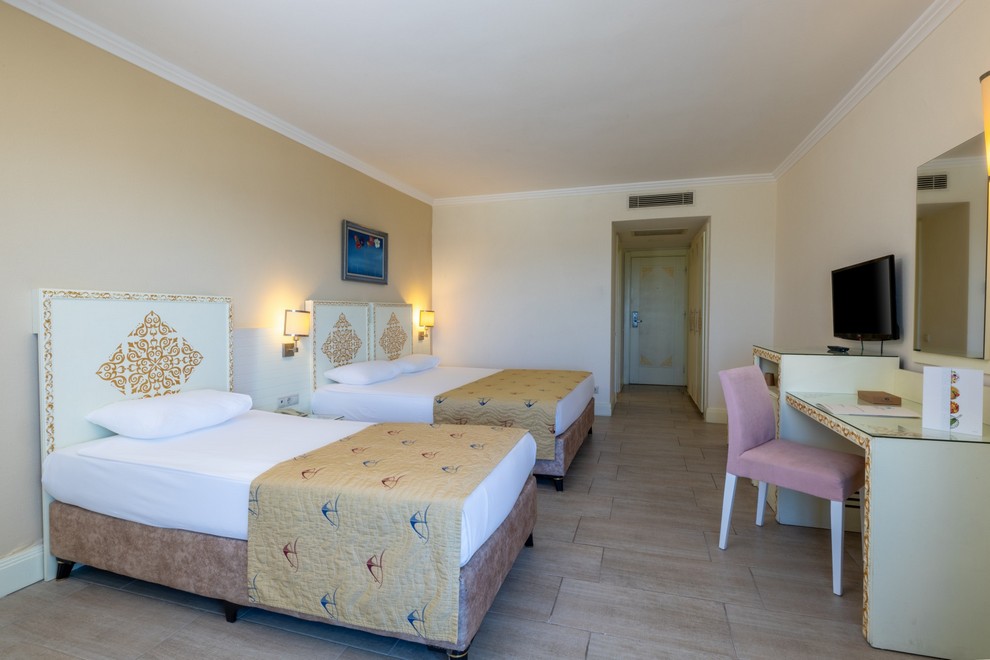 Хотелът се състои от една 6-етажна сграда (има асансьори), в която са разпределени 834 климатизирани стаи. Те са обзаведени със сателитна телевизия, директен телефон, сейф, минибар, баня с душ, сешоар, Wi-Fi, балкон. Почистване на стаите - всеки ден, смяна на бельото - 3 пъти в седмицата.