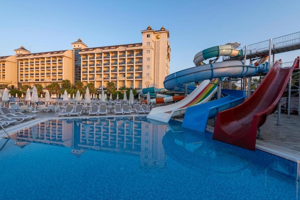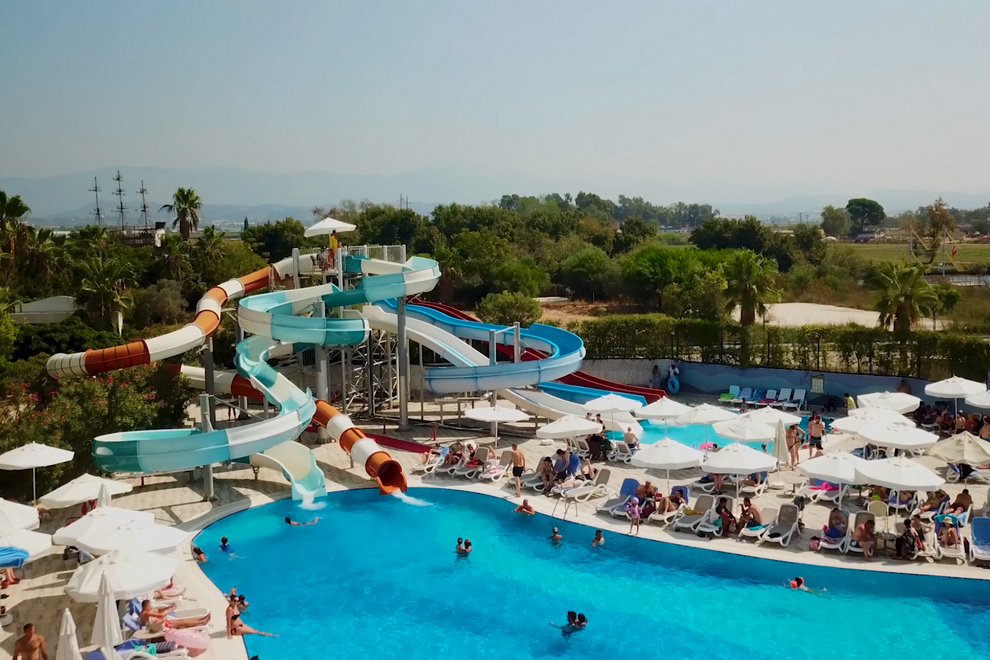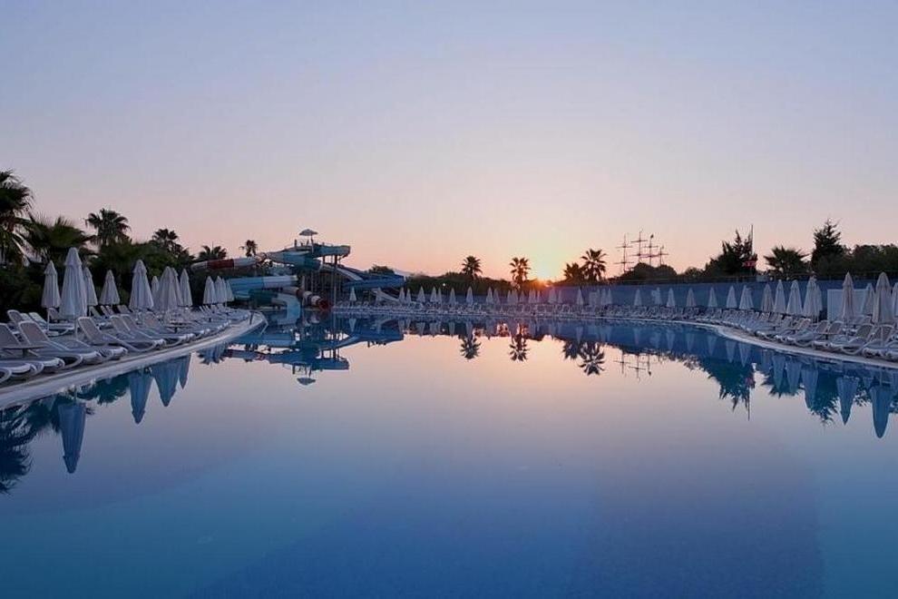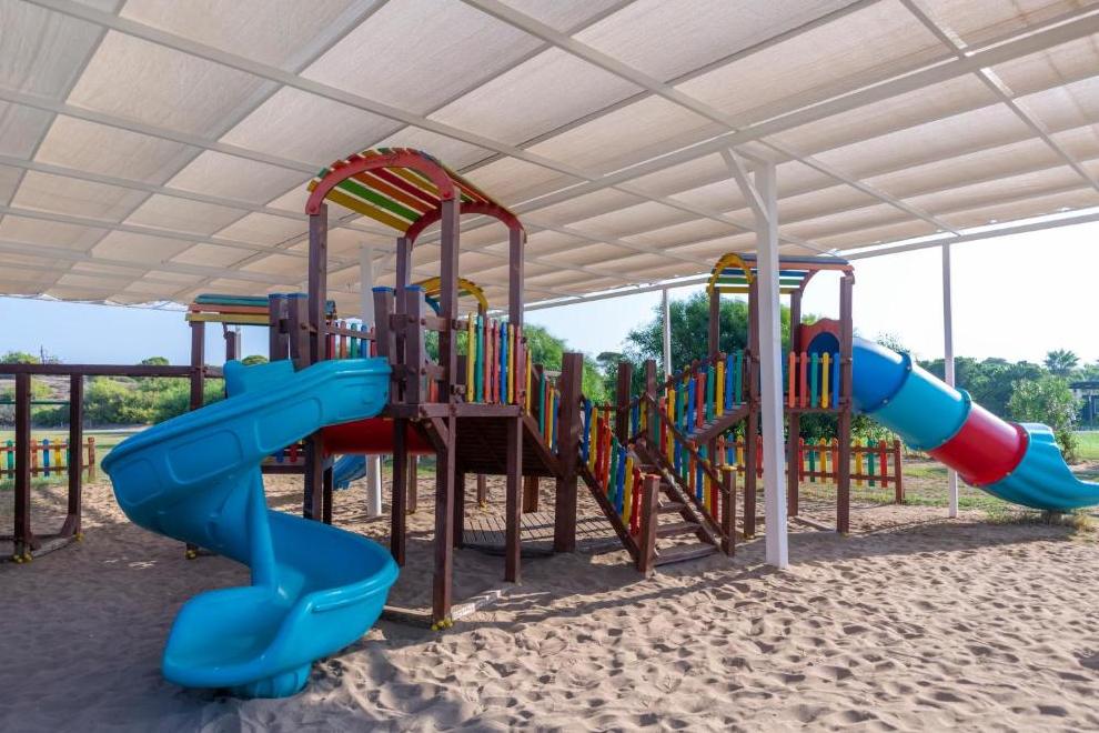 Собствен, пясъчно-чакълест плаж, дълъг 70 м се намира на 750 м от хотела, осигурен е безплатен шатъл. На плажа има плажни павилиони. На разположение на гостите има 2 външни сладководни басейна без отопление: 845 кв.м, дълбочина 140 см (работно време: 08:00-20:00ч). и басейн с пързалки 52 кв.м, дълбочина 115 см. 1 вътрешен басейн, 76 кв.м, дълбочина 140 см. 5 водни пързалки за възрастни и 4 детски пързалки. Чадъри, шезлонги и плажни кърпи на плажа и при басейна се ползват безплатно.