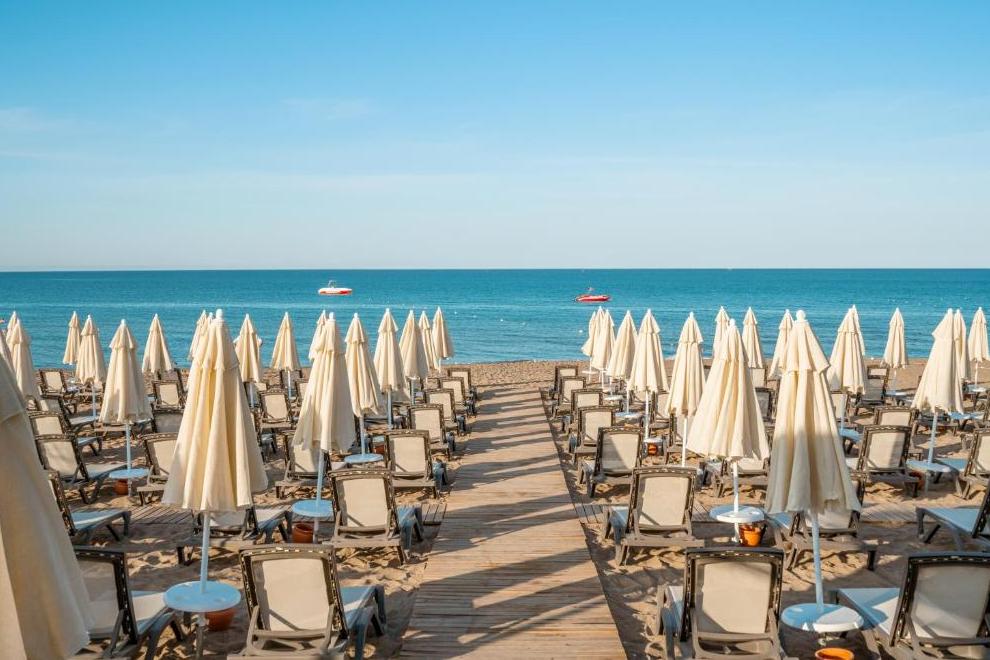 Собствен пясъчен плаж на 700 м от хотела с осигурен безплатен шатъл. 2 големи открити басейна, един закрит басейн