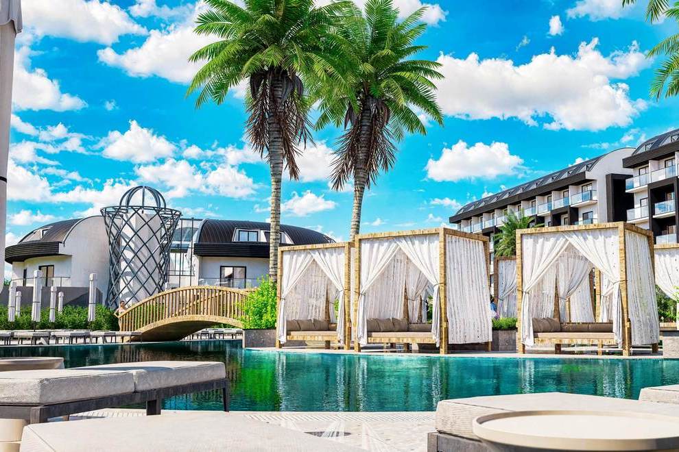 Състои се от 1 основна сграда (6 етажа, 12 асансьора), 2 допълнителни сгради(3 етажа, асансьори), в които са разпределени 486 климатизирани стаи. Те са оборудвани с телефон, телевизор, минибар, сейф, баня, сешоар, халат, чехли, безплатен Wi-Fi.