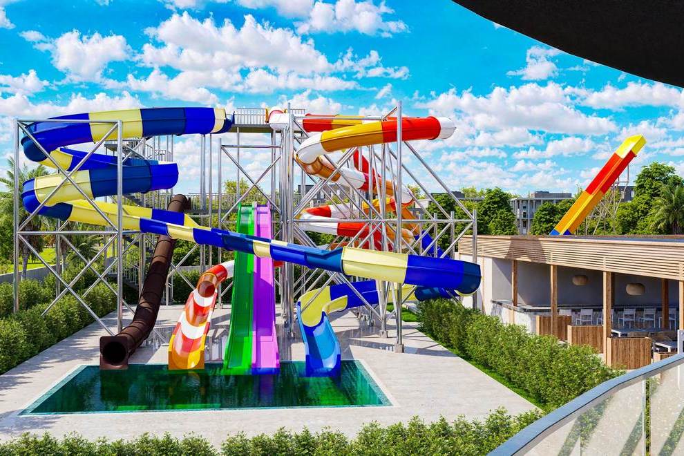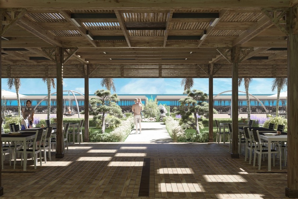Собствен пясъчно-чакълест плаж на 380 м от хотела. 1 външен басейн 1200 кв.м, без отопление, 1 вътрешен басейн 135 кв.м, без отопление. 8 водни пързалки без отопление.
