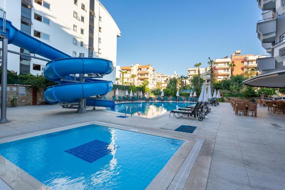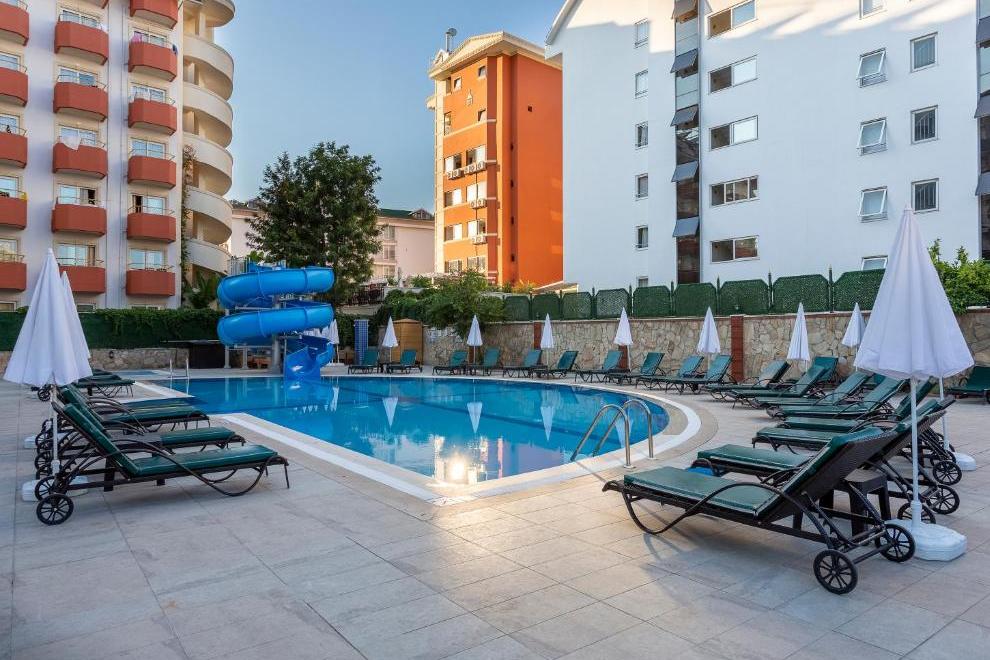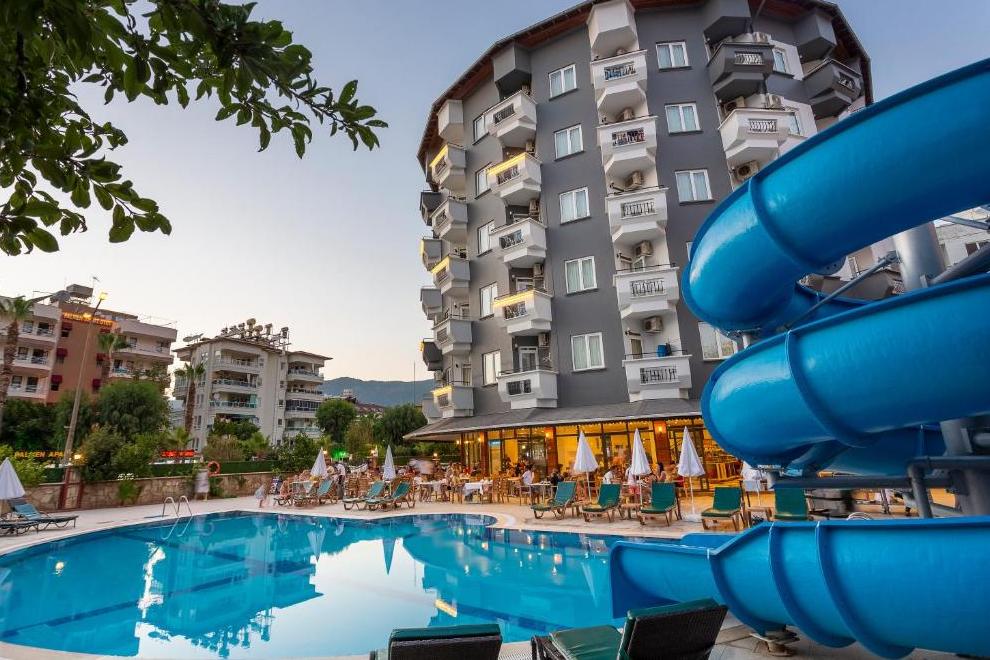 Хотелът с намира на 150 м от брега на морето, на 4,5 км от известния плаж Клеопатра. Центърът на Алания е само на 3 км, а международното летище Анталия е на 135 км.
