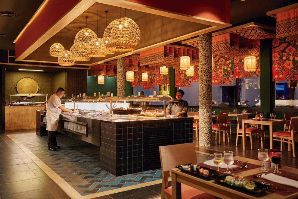 На разположение на гостите са основен ресторант с интернационална кухня и шоу кукинг и 3 а`ла карт ресторанта - италиански, азиатски, гурме (с предварителна резервация). Разхладителни напитки и закуски се поднасят в 5 бара: лоби бар, лаундж бар, бар при басейна с концепция Adults Only 18+ (само за възрастни 18+), снек бар на плажа, втори бар на плажа.