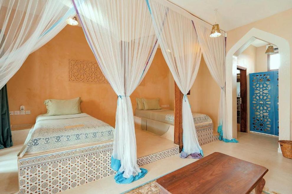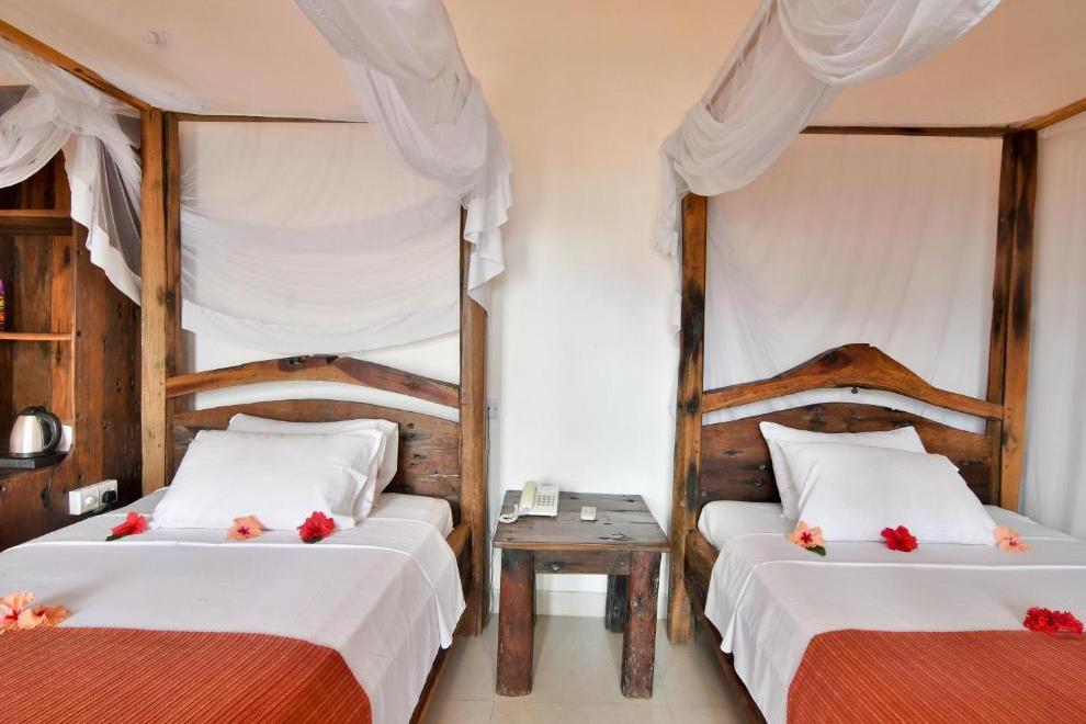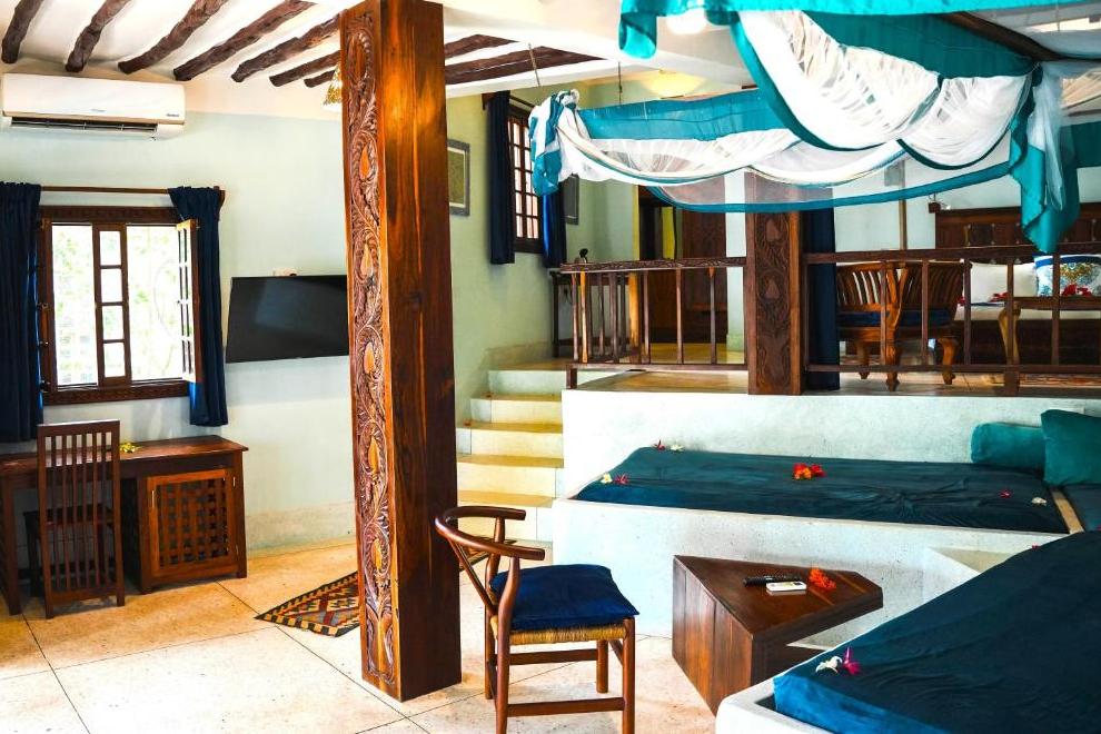 Хотелът настанява гостите си в климатизирани стаи и суити с изглед към Индийския океан или градината. Мебелирани в местен стил, стаите са оборудвани с телевизор, минибар, сейф и мрежи против комари, баня с душ/вана, сешоар. Стаите с двойно и 2 отделни легла са разположени на горен етаж и предлагат балкон с изглед към морето. По-просторните суити са с кът за сядане и веранда с морски изглед или с изглед към градината.