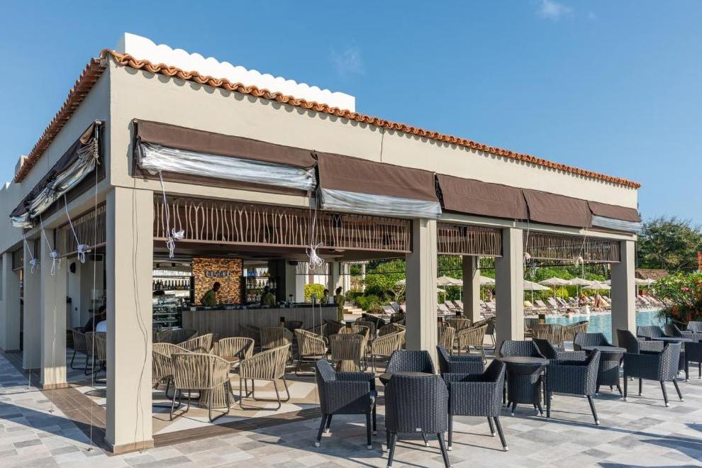 Собствен пясъчен плаж, 4 открити и 1 закрит басейн. Чадъри, шезлонги и плажни кърпи при басейна се ползват безплатно.