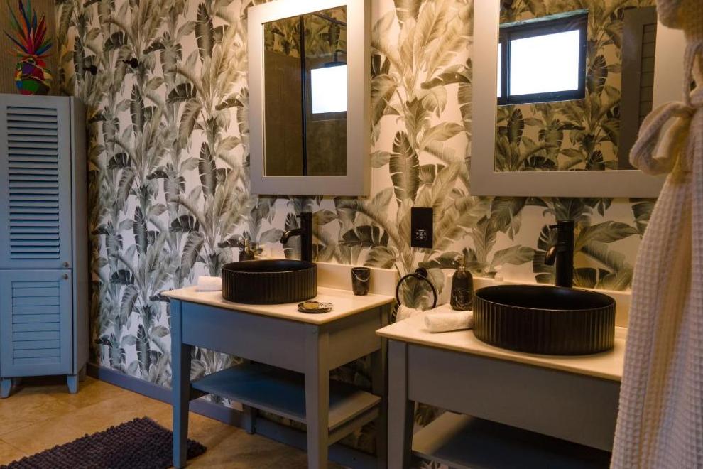 Вила 1 е вила с площ 300 кв. м. с 4 спални и 3 бани, а вила 2 е вила с площ 200 кв. м. с 2 спални и 2 бани. Заедно могат да се настанят до 12 гости и могат да се наемат поотделно или заедно. Идеален за семейства с деца от всички възрасти, групи приятели или за хора, търсещи пълно уединение. Предлага се допълнителна кошара за бебета под 3 години. И двете вили имат мраморни подове навсякъде, ръчно изработени мебели по поръчка от местно добито манга и кокосово дърво, произведения на изкуството от целия африкански континент, вътрешни и външни зони за хранене, градински хамаци, климатик. Вилите предлагат услуга на оптимален лукс с много включени удобства и предимства: I-pads, Bluetooth високоговорители, LED телевизори с плосък екран с цифрови канали, включително BBC, CNN, спорт и филми, DVD плейъри с домашна библиотека от над 200 DVD, включително много класически филми, сериали и детски филми, безплатен Wi-Fi, както и някои домашни уреди за упражнения; Включени са също тоалетни принадлежности Inaya, безплатна бутилка пенливо вино, пресован пресен сок и поднос с тропически плодове. Вилите са оборудвани с персонал от личен готвач, сервитьор, иконом, иконом, охрана и управител на вила – всички на разположение, за да задоволят всяка ваша прищявка.