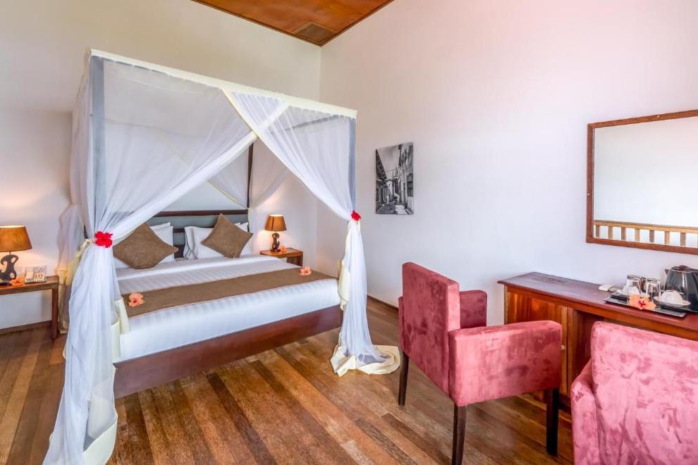 Хотелът посреща гостите си в стаи: Deluxe Ocean Room (40 кв.м), Deluxe Ocean Suite, Superior Garden Room, Standard Garden Room (70 кв.м), Superior Pool View Room (50 кв.м), Villas. Стаите разполагат с красиви високи тавани от дърво, мраморен под и френски прозорци с гледка градина или море. Всички стаи са оборудвани с климатик, телевизор с плосък екран, телефон, баня с душ, сешоар, минибар (платен), сейф, бюро, сет за кафе и чай, балкон или тераса, Wi-Fi (платен).