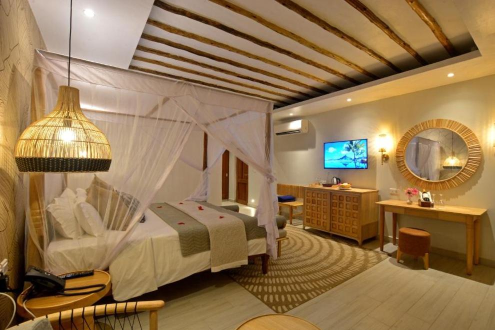 Посреща гостите си в 170 климатизирани стаи, от които Deluxe Garden Side Ocean View и Deluxe Seaside Ocean View (55 кв.м) и Master Suite Seaside Ocean View (100 кв.м), комфортно обзаведени в типичния местен африкански стил, разположени в двуетажни къщички. Всички стаи имат телевизор, минибар, сет за чай/кафе, сейф, кът за сядане, баня с душ, сешоар, тераса.