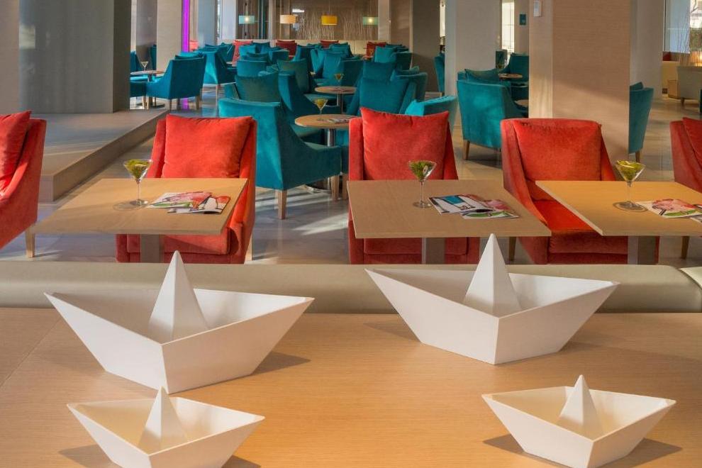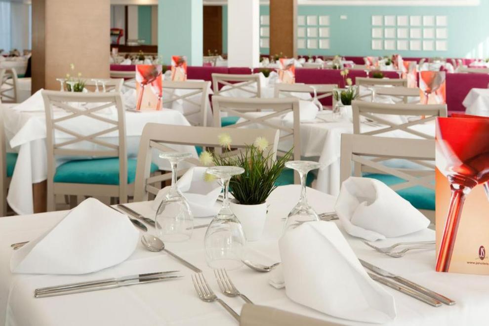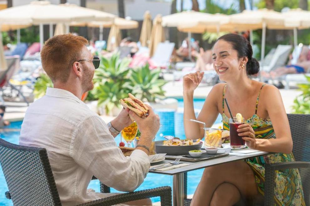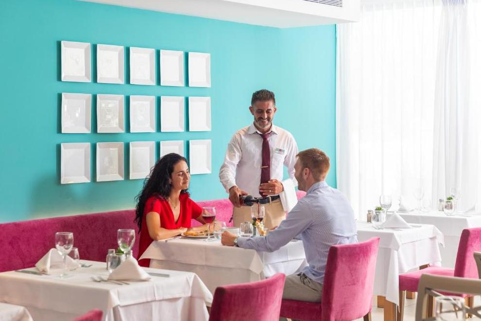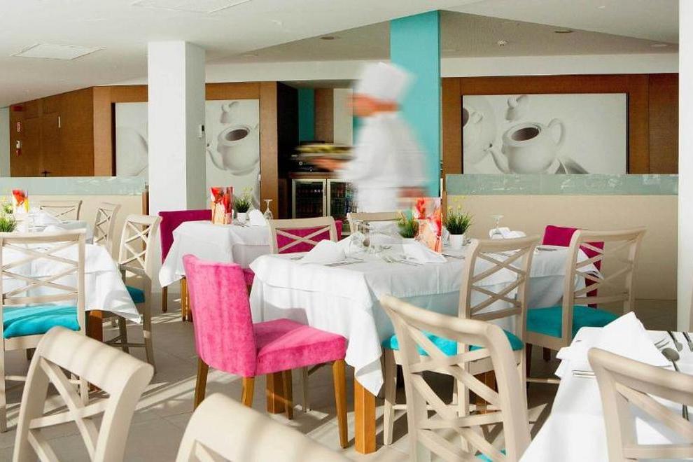 В бюфет ресторанта, с услуги за готвене на живо, можете да се насладите на пълна закуска и ежедневни тематични вечери (италианска, ориенталска, ден за месо и др.). Ресторантът разполага и с открита тераса. Снек барът разполага с маси на терасата в зоната на басейна. Мокрият бар е отворен само през летия сезон и предлага разнообразие от напитки.