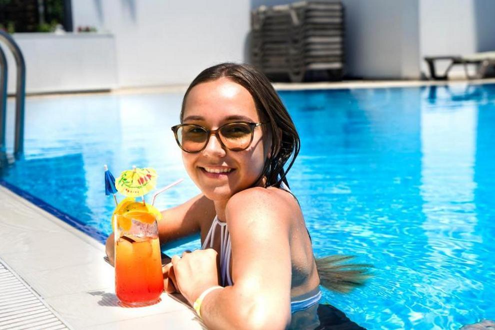 Собствен, пясъчен, на 50 м от хотела. Открит басейн. Чадъри и шезлонги на плажа и при басейна – безплатни.