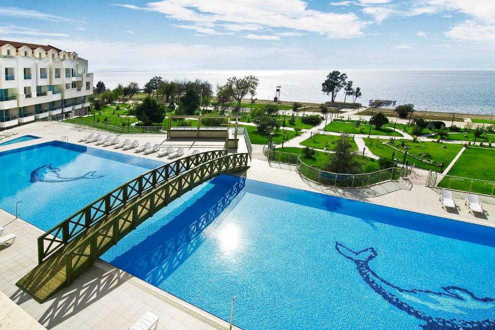 Хотелът е на първа линия и разполага със собствен плаж. Хотелът предлага и два термални басейна, един външен басейн и детски басейн.