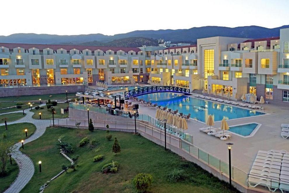 Хотел Adrina Termal Health & Spa се намира сред терен от 39 000 м² на брега на морето, в подножието на планината Каз. Летище Balikesir Koca Seyit е на 17 км от хотела.