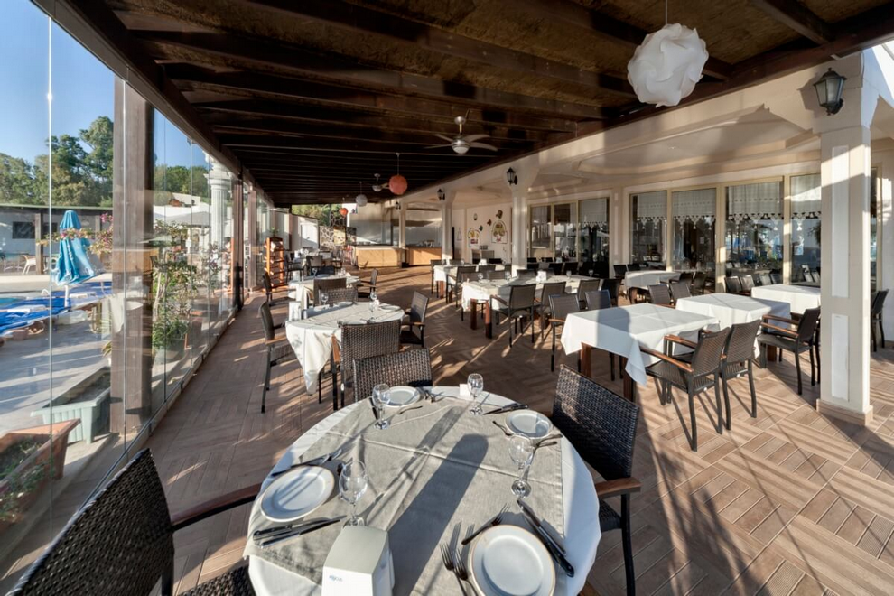 Ресторантът на хотела предлага турска и международна кухня. В бара се предлагат разхладителни напитки.