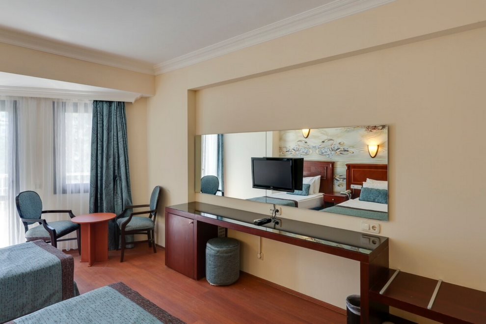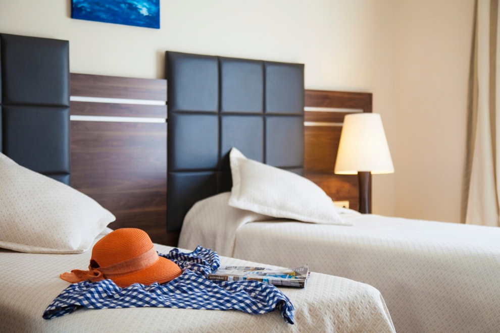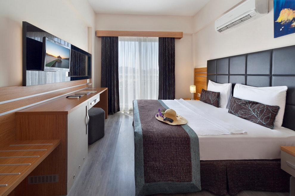 Хотелът посреща гостите си в климатизирани стаи, които са обзаведени с телевизор, малък хладилник и балкон или тераса. Самостоятелната баня е с душ и тоалетна. Някои стаи са с морски изглед.