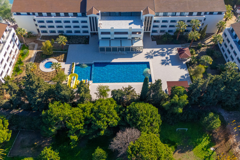 Собствен пясъчен плаж, който е на 400 м от хотела. На разположение на гостите има открит басейн, детски басейн и водна пързалка. Шезлонги и чадъри на плажа и при басейна се ползват безплатно.