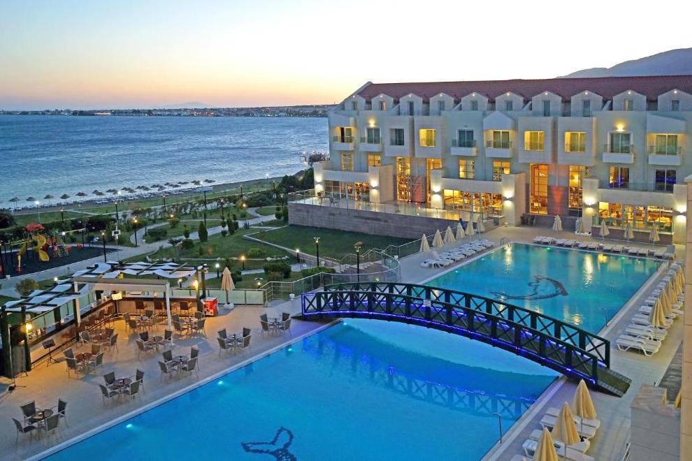 Хотел Adrina Termal Health & Spa се намира сред терен от 39 000 м² на брега на морето, в подножието на планината Каз. Летище Balikesir Koca Seyit е на 17 км от хотела.