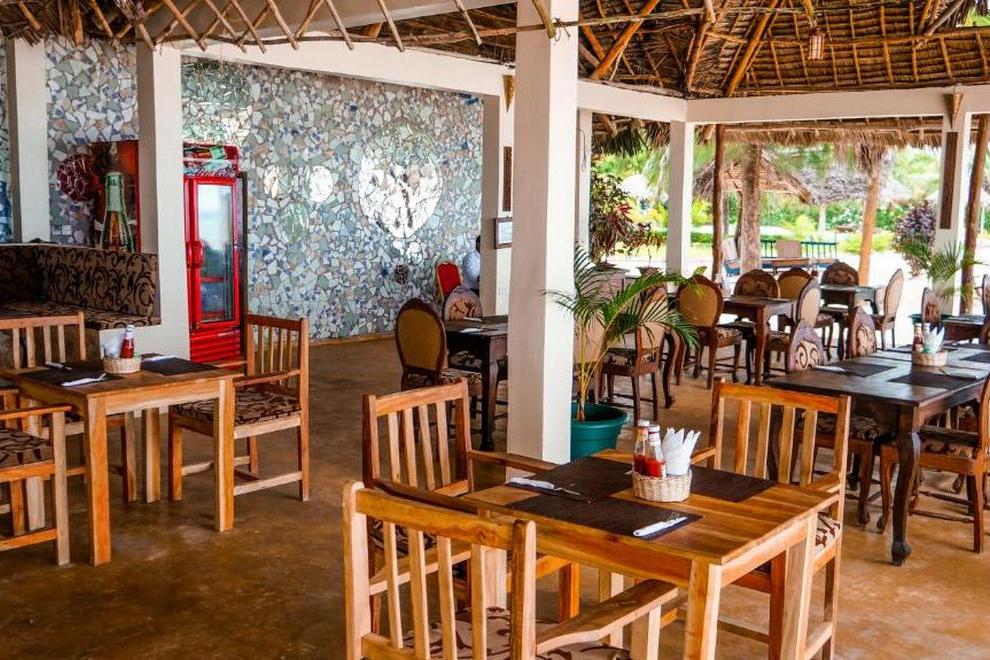 Ресторантът е откъм страната на плажа и предлага невероятна гледка към океана. Менюто включва разнообразие от опции, включително традиционни занзибарски ястия, пресни морски дарове и вегетариански изкушения, гарантирайки, че има по нещо за всеки.
