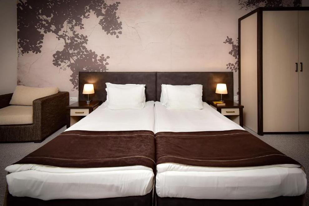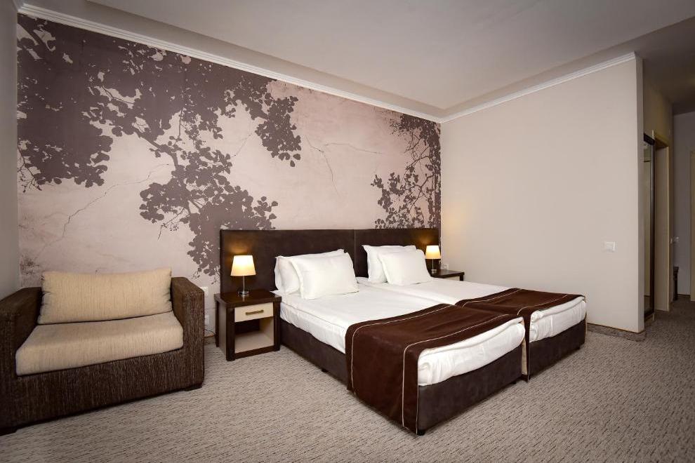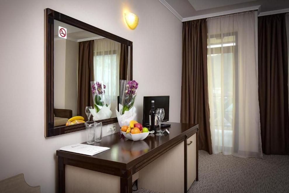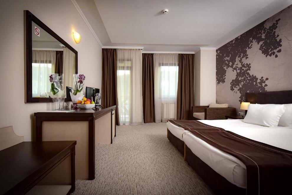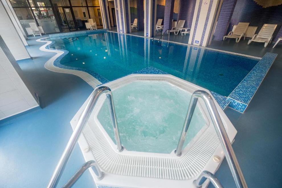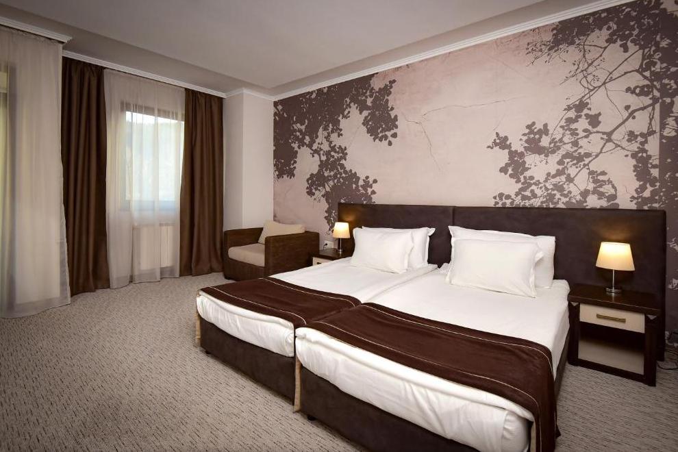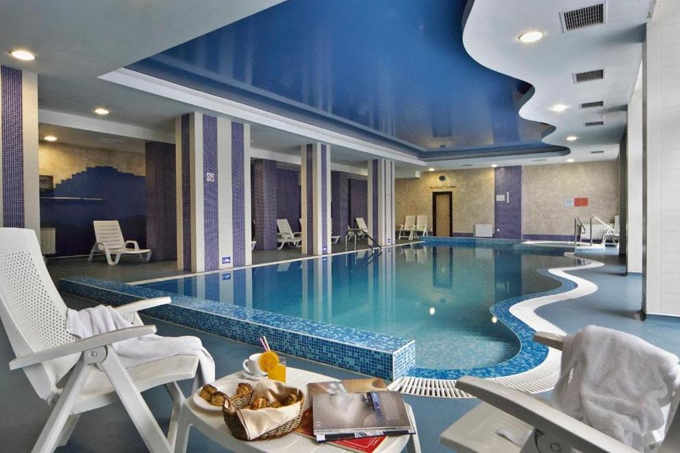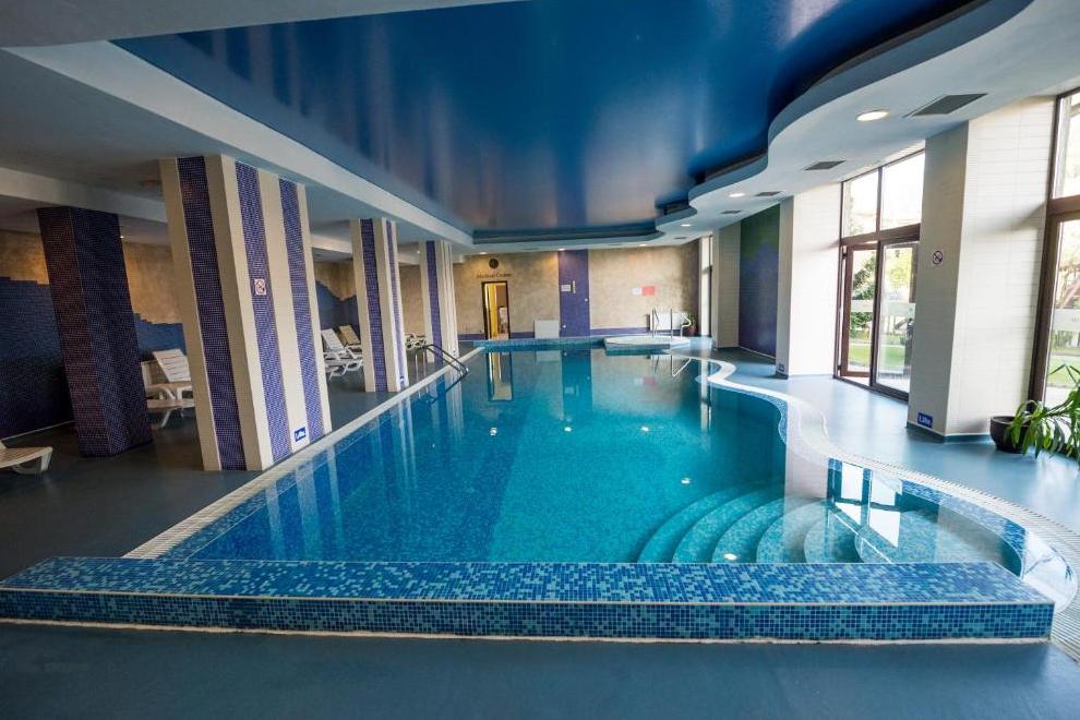 Отлично поддържан, чист, с топла вода с постоянна температура, басейнът на хотела е подходящ и за най-малките гости. Басейнът е закрит, отопляем и се използва целогодишно. През лятото френските прозорци се отварят и шезлонгите се разполагат на слънчевия дек на открито, за да се радват гостите на прочутият ни лековит въздух, здравословен тен и планинското слънце. В зоната на басейна са разположени дамска и мъжка съблекалня, тоалетна, душ, сешоар и шезлонги. СПРА центърът на хотела предлага сауна, парна баня, масажи, солна стая. За децата има детска площадка, бебешки кошарки. Безплатен Wi-Fi.