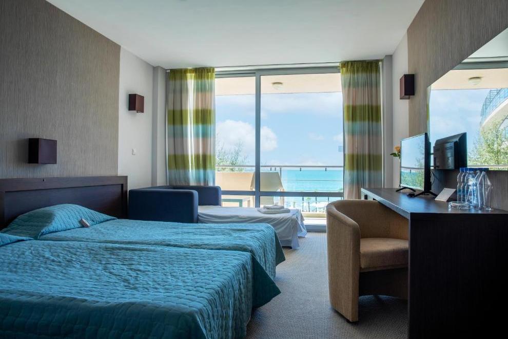 Хотелът посреща гостите си в 244 климатизирани, елегантно обзаведени стаи. Двойна стая стандарт изглед басейн (страничен изглед море), разполага със сателитна телевизия, разтегателен фотьойл, бюро, телефон, минибар, сейф, халат и чехли, баня с душ и вана. Двойни стандартни стаи с гледка басейн/море, представлява едно помещение 22 квадратни метра с две отделни стандартни легла и две допълнителни легла, които са разтегаеми фотьойли. Максимално настаняване е двама възрастни и две деца или трима възрастни и едно дете. Допълнителното легло е разтегаем фотьойл. Стаи King и Queen (3+1) - големи и просторни помещения с директен морски изглед, без преградни врати в помещението. Препоръчано настаняване 2 възрастни. Могат да съберат до 3 възрастни и дете. Апартамент (60 кв. м) с две отделни помещения – спалня и хол с баня, просторна тераса от 30 кв. м, обзаведена с балконска мебел.