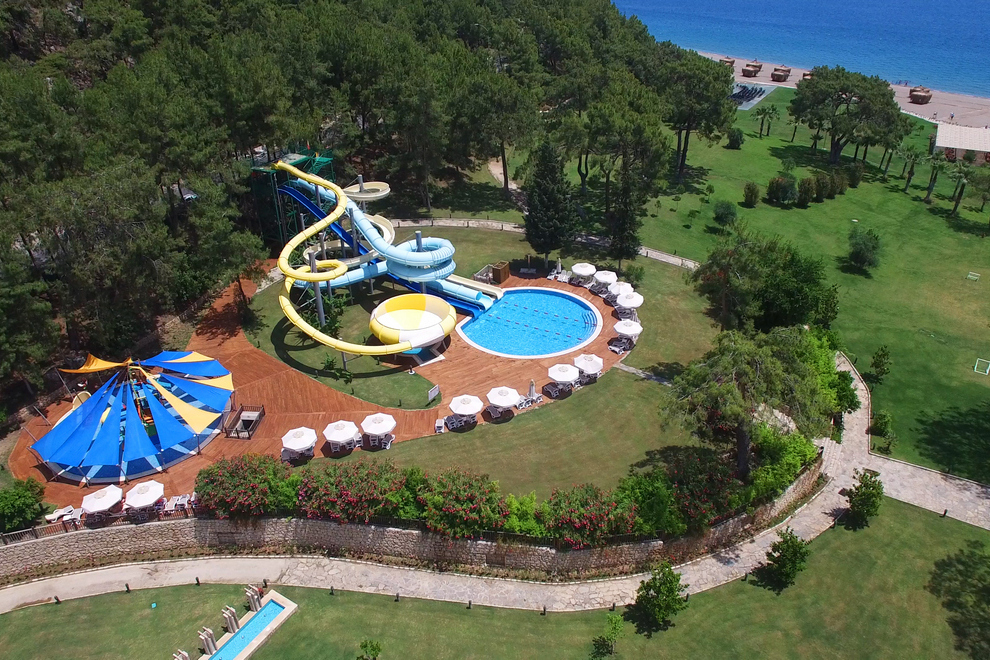Собствен пясъчно-чакълест плаж, дълъг 630 м. 4 открити басейна (един от тях отопляем от (от ноември до края на април). 1 вътрешен басейн 393 кв.м. 4 водни пързалки (без отопление), които работят в зависимост от метеорологичните условия. Чадъри, шезлонги, матраци на плажа и при басейна се ползват безплатно.