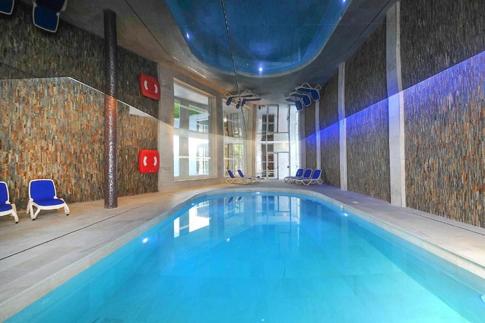 Развлекателна програма за възрастни и деца, впечатляващ и приветлив СПА център, фитнес зала, закрит плувен басейн за зимните месеци. Зона с два басейна за деца.