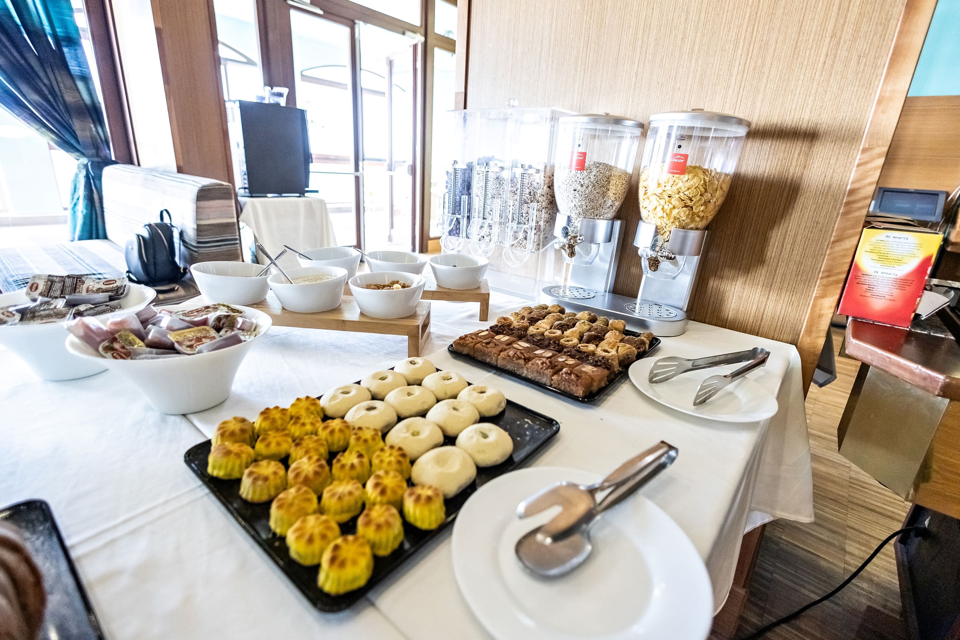 В основния ресторант се сервира закуската. Лоби барът и ресторантът на плажа предлагат храна от основното и от обедното меню.