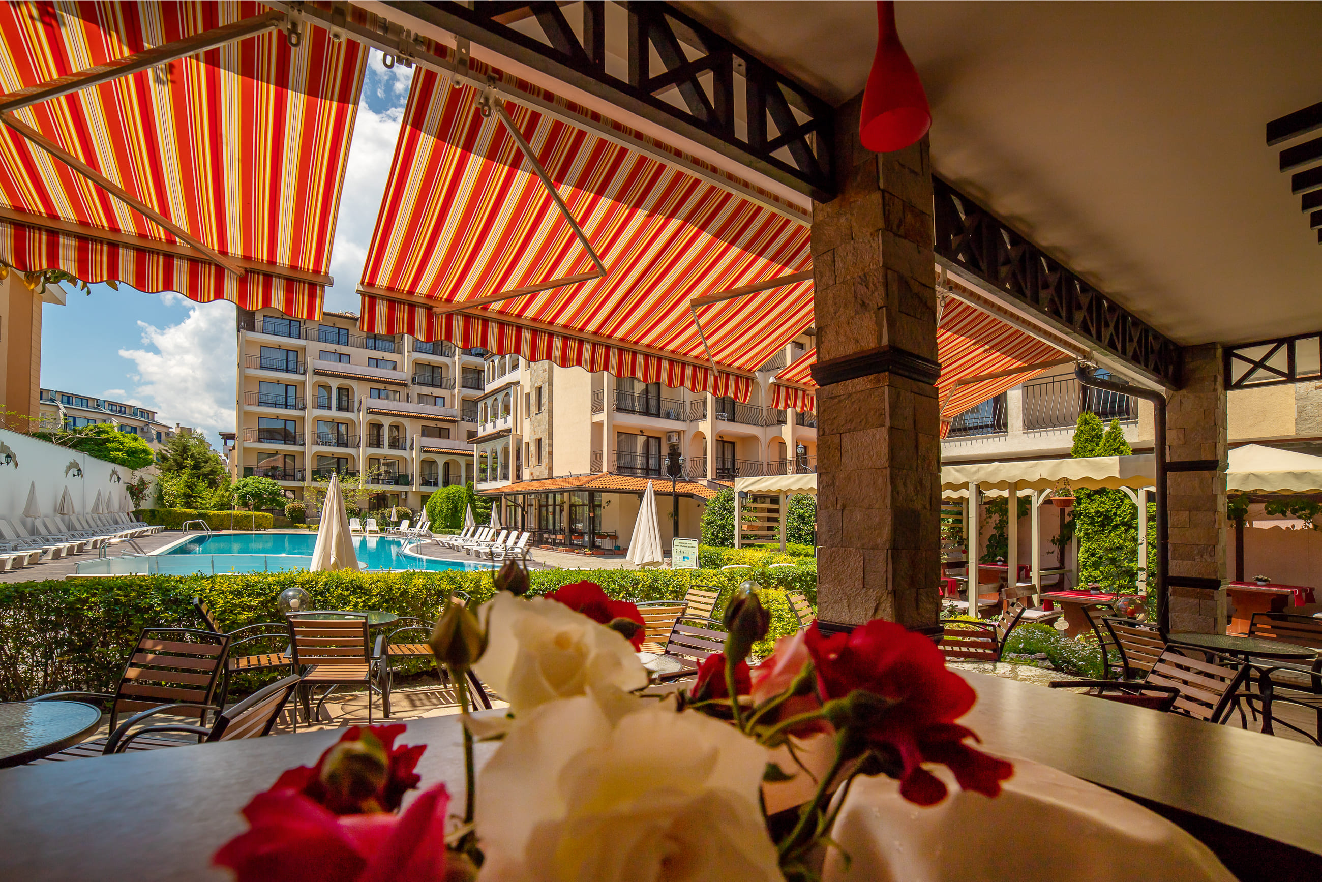 Rose Villagе, разполага с ресторант със 150 места на закрито и открито, богато озеленен район, с два басейна, с обособена детска зона, детска площадка, паркинги.