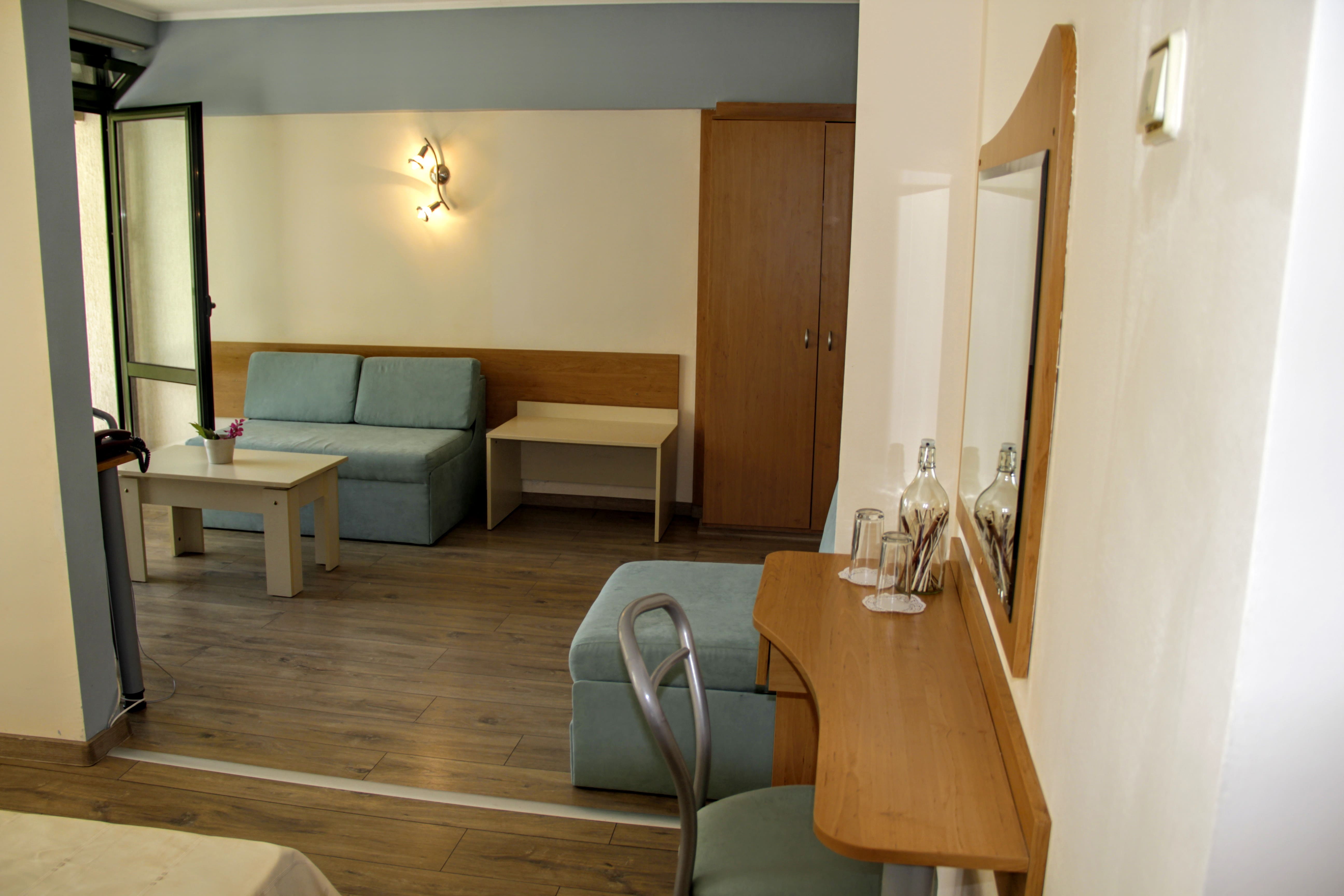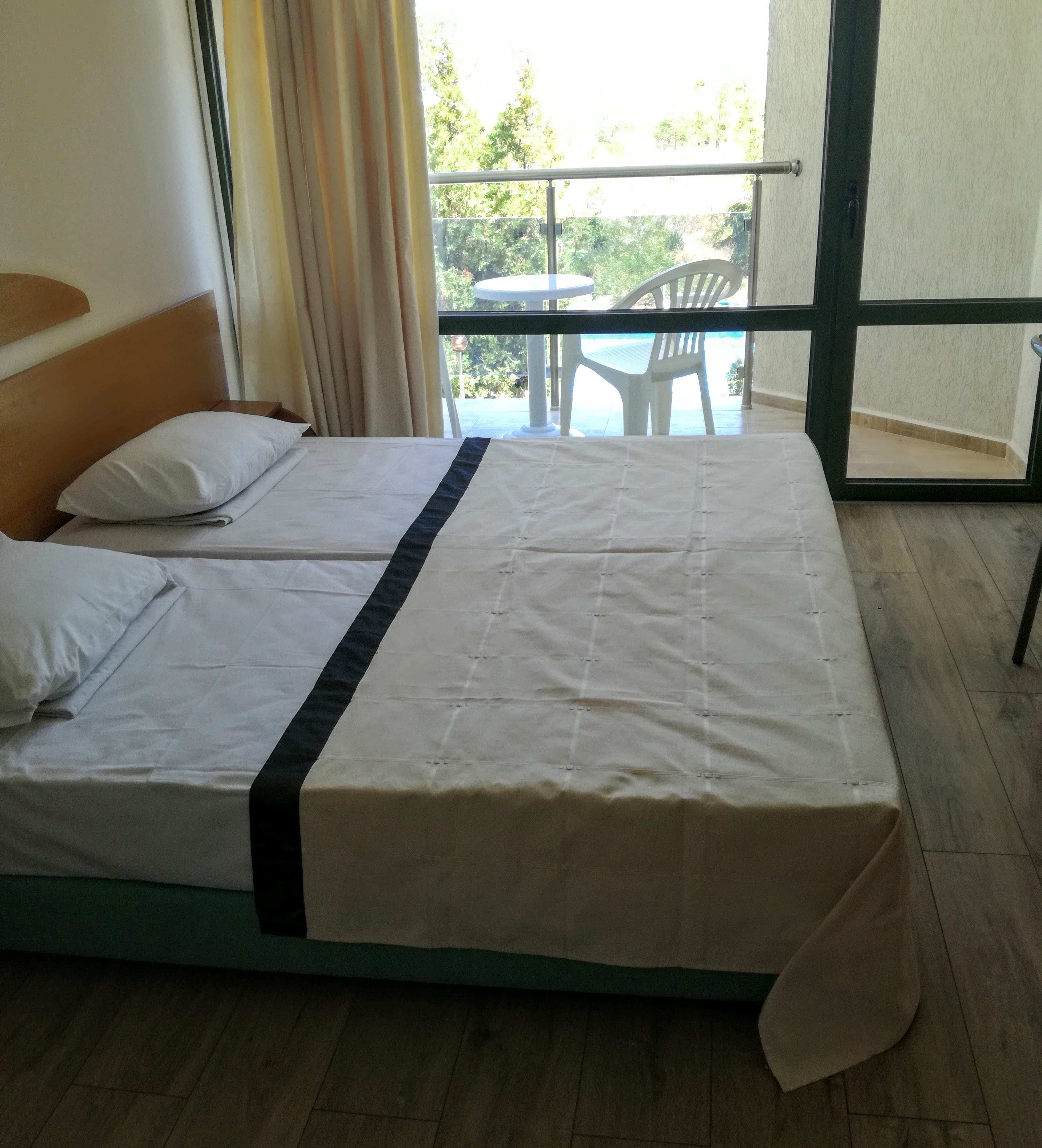 Хотелът е на 6 етажа, част от стаите предлагат прекрасна гледка към морето. Разполага с общ брой стаи – 60, рецепция, и малък кафе-бар. Стаите са модерно оборудвани с кабелна телевизия, телефон, мини бар, хладилник и др. екстри в зависимост от типа стая. Двойна стандартна стая с максимално настаняване (2+1). Студио - луксозна двойна стая с допълнителен бокс и максимално настаняване (2+1) и две тераси. Фамилна стая -две двойни стаи с две отделни спални, две бани, две тераси с максимално настаняване (2+1) за първата спалня и (2) за втората спалня.