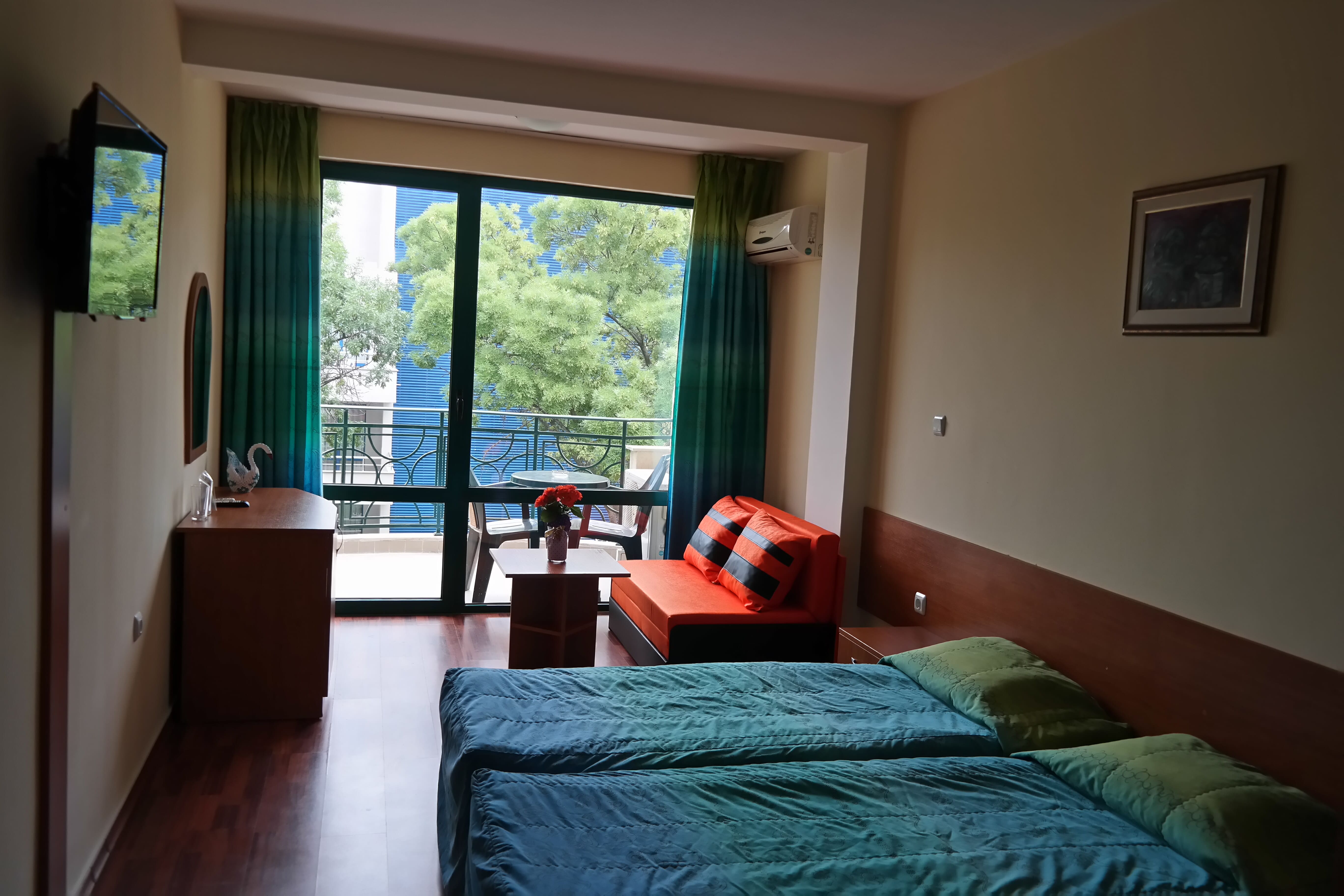 Предлага 26 стаи и 3 едноспални апартаменти, подходящи, както за двойки, така и за семейства с деца. Всяка стая е снабдена с климатик, телевизор с плосък екран, хладилник, баня с душ и тераса. На разположение на гостите са уреди за гладене за общо ползване. Осигурен е и достъп до Интернет в общите части на хотела.