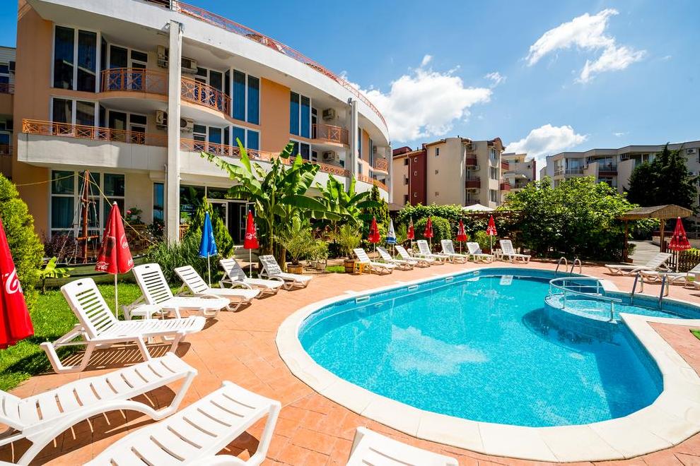 Хотелът е на самия морски бряг и предлага удобството на открит басейн.