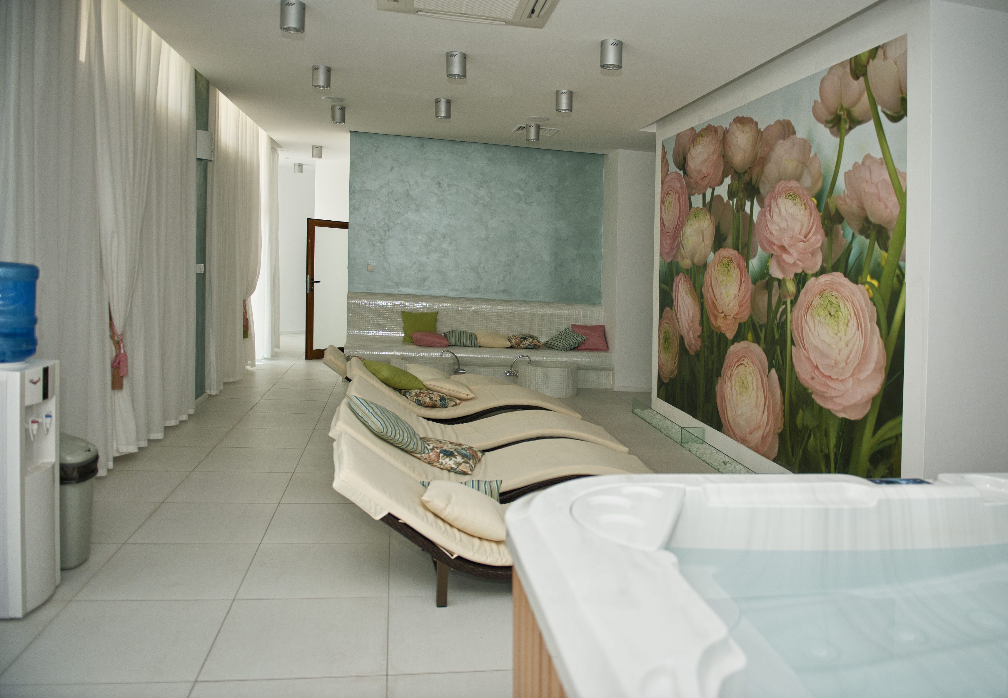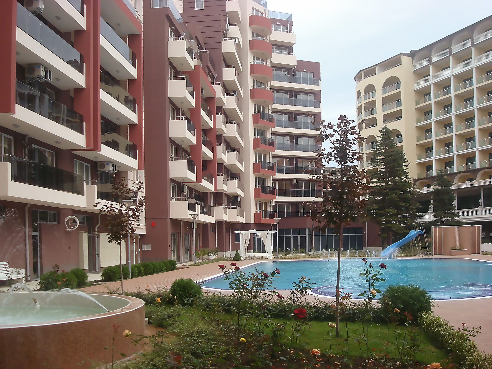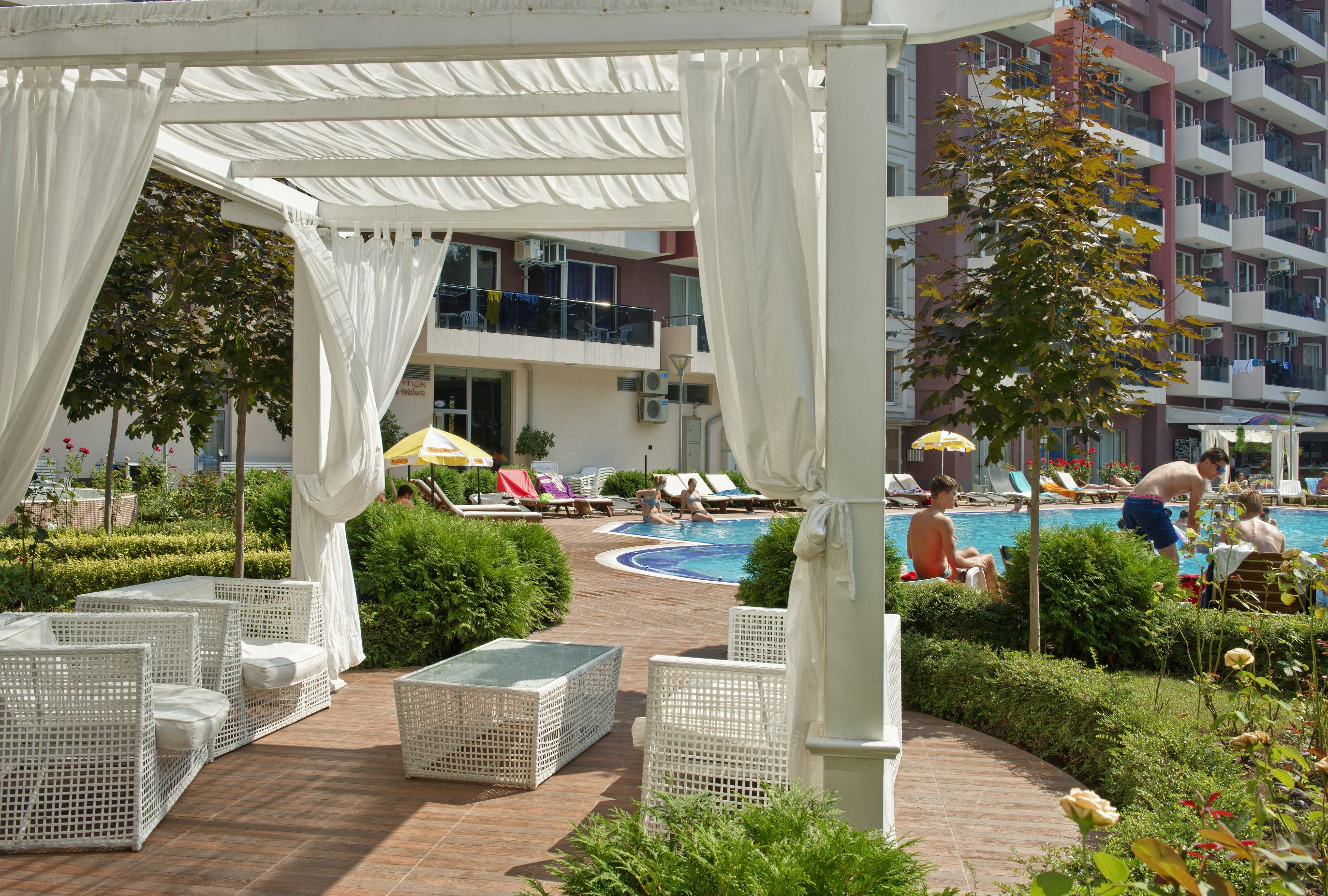 Детска площадка, детска закрита площадка, библиотека, стая за игри, външен басейн с джакузи и детска зона с пързалка.